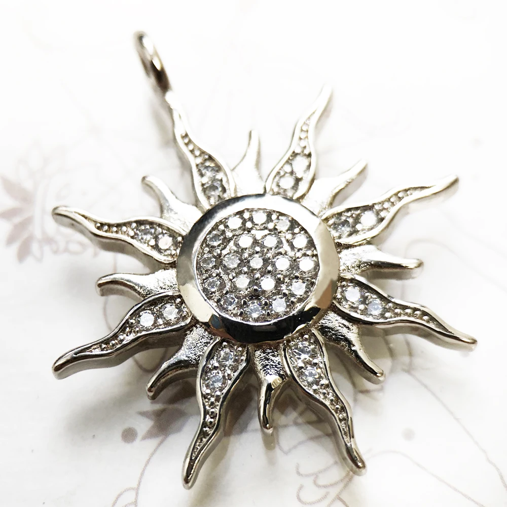 Pendentif, soleil, étoile, CZ, pavé, été, hiver, nouveau, 925, argent sterling, fin, bijoux, Europe, style, accessoires, cadeau, pour hommes, femmes