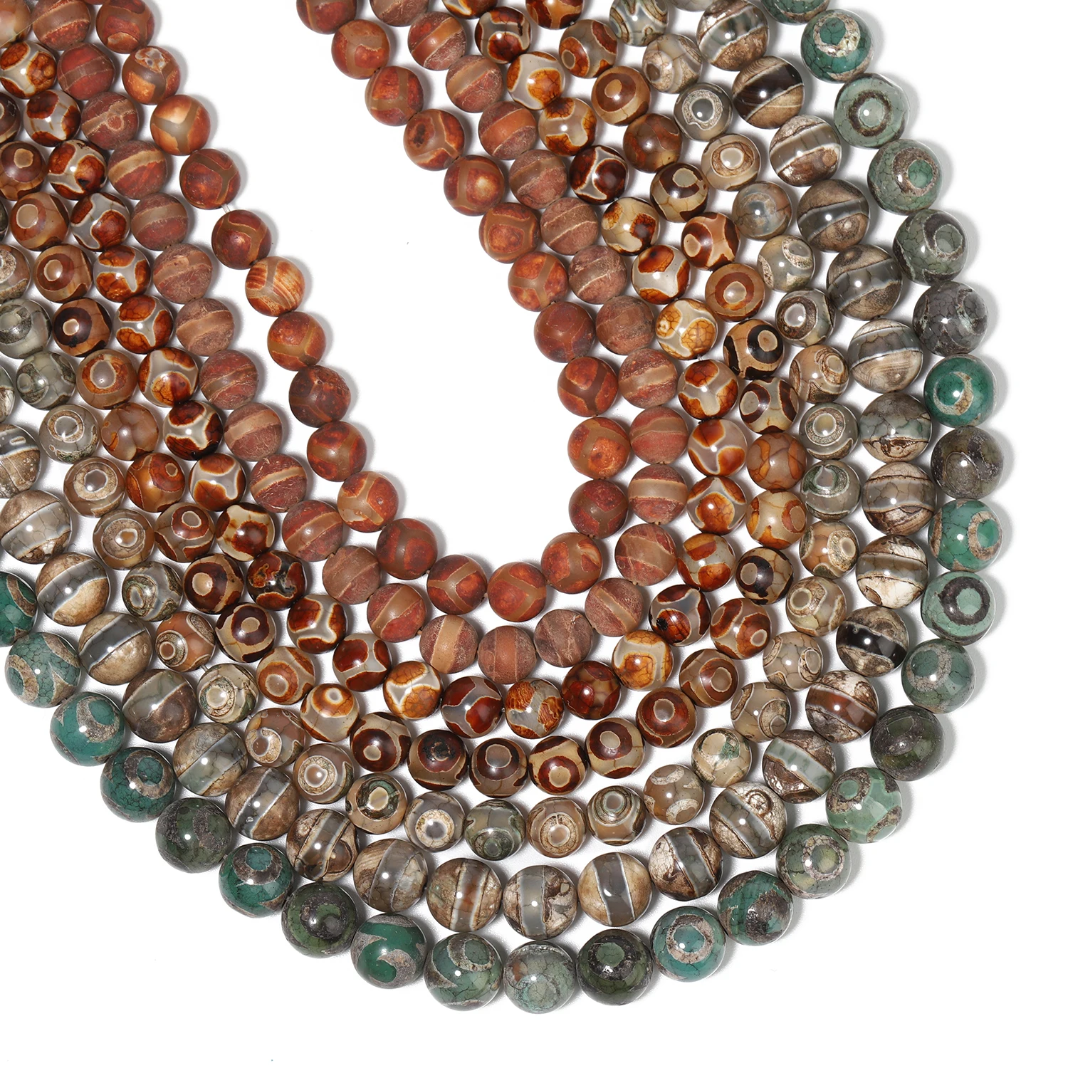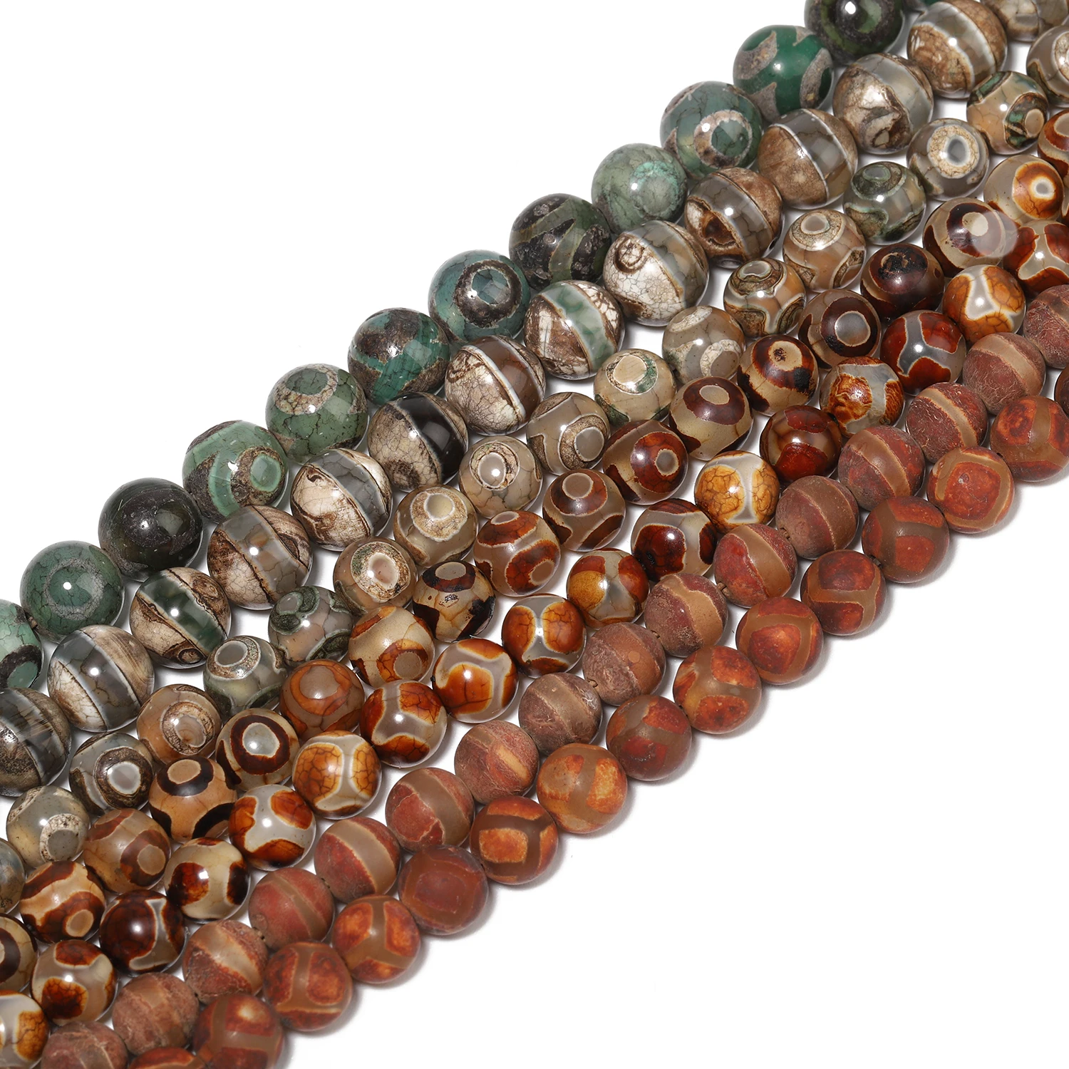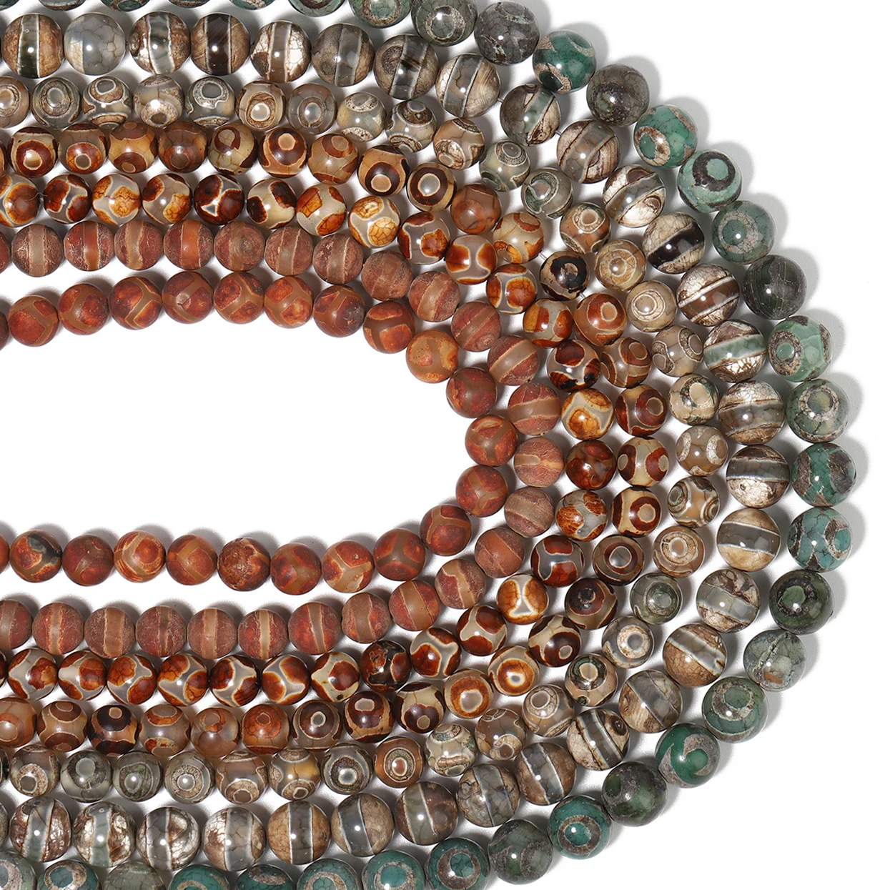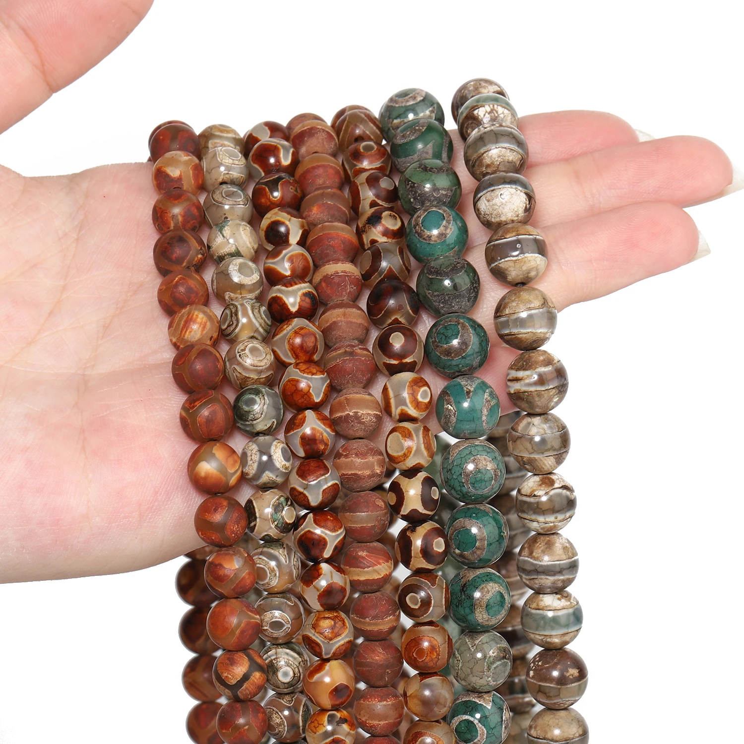 Perles rondes de football tibétaines en pierre naturelle d'agate DZI, 8mm 10mm, entretoise ample ronde pour la fabrication de bijoux, accessoires de bracelet à faire soi-même