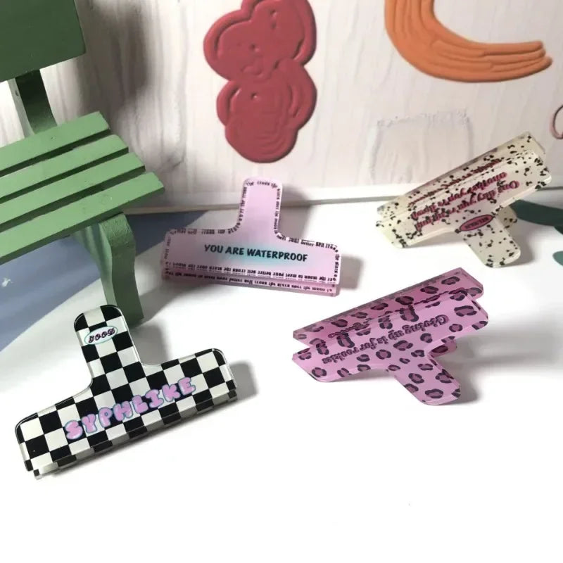 Pince à reliure en acrylique de dessin animé rétro, pince à ressort, stockage de photos, mémo de papier de test, tendance américaine, fille mignonne, accessoires de bureau