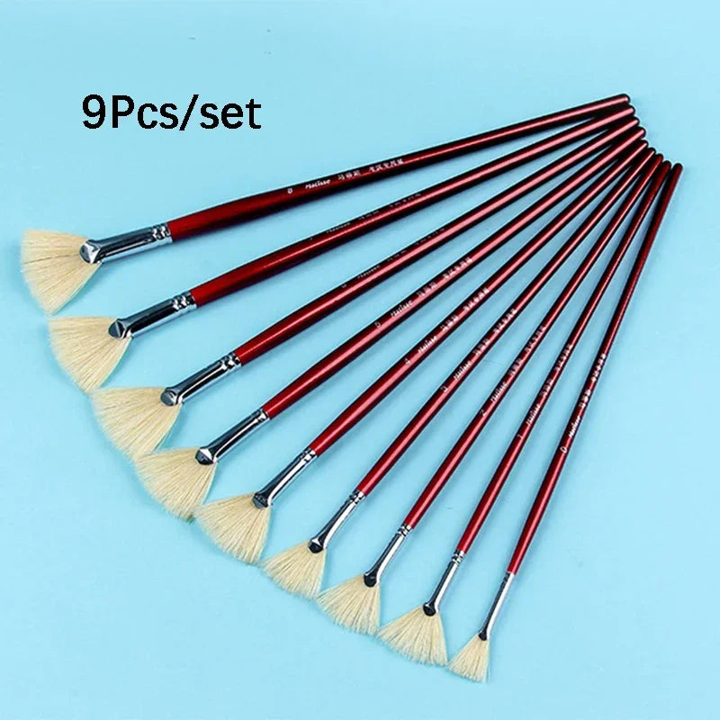 1 pièces/9 pièces poils ventilateur brosse peinture huile pinceau Gouache acrylique aquarelle ensemble de pinceaux fournitures d'art professionnelles papeterie