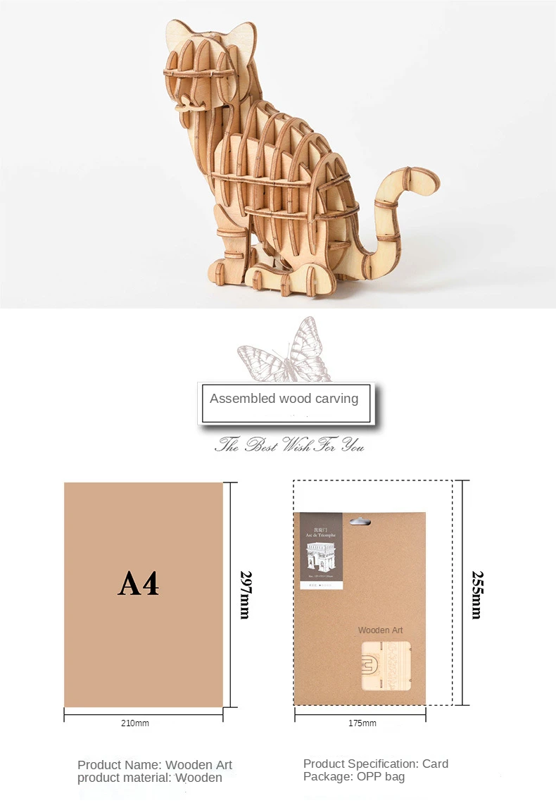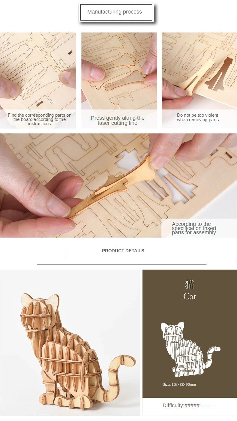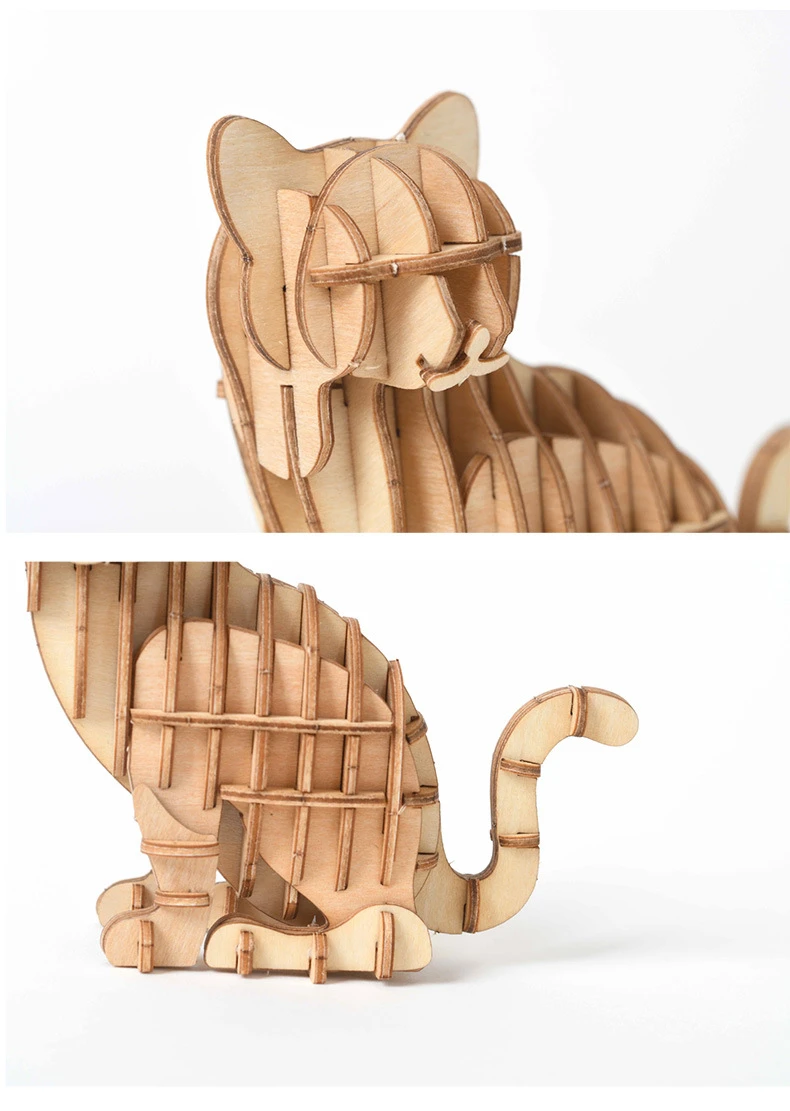 Planche de puzzle en bois 3D pour enfants, jouets d'assemblage de chat, bloc de construction fait à la main, découpé au Laser, modèle de puzzle de Koala de poisson Montessori