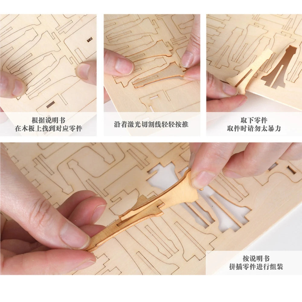 2.Ce puzzle 3D éducatif et cool développe l'esprit de vos enfants tout en étant construit par les mains de votre enfant.Il n'y a pas de tel élément qui pourrait améliorer la créativité et la capacité de pratique de vos enfants avec plaisir et plaisir.Non toxique, respectueux de l'ECO, avec une technologie de découpe laser précise et propre, il a un bord lisse sans bavure, sûr à jouer.