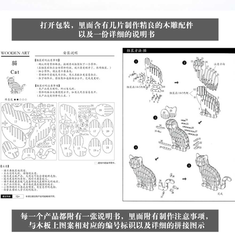 Puzzle d'animaux Montessori en bois 3D, jouets pour chats, bloc de construction fait à la main pour enfants, bricolage poisson Kola, modèle de planche de puzzle découpée au Laser