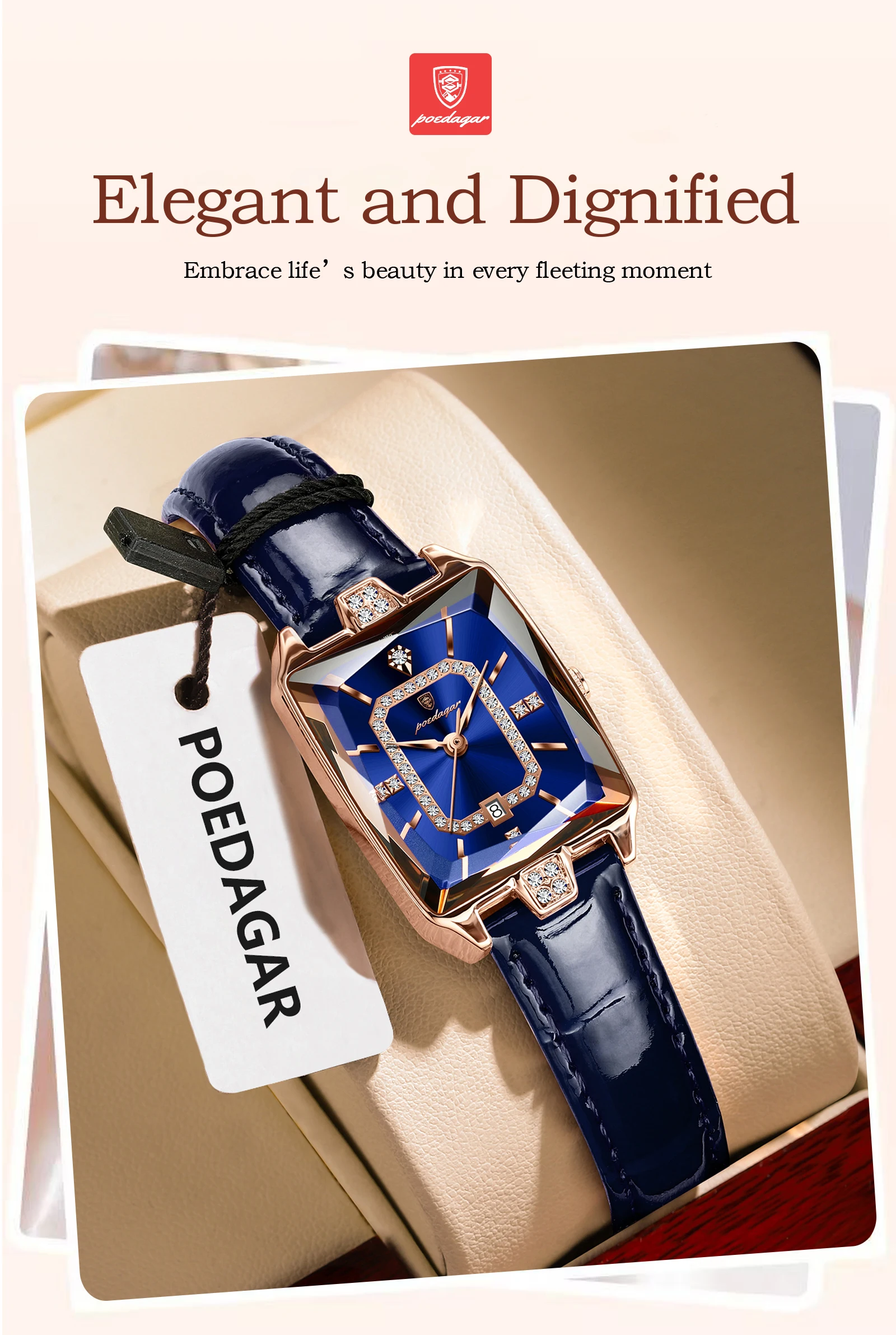 POEDAGAR classique luxe femmes montres étanche en cuir Date mode femme montre élégante de haute qualité Quartz femmes montre-bracelet