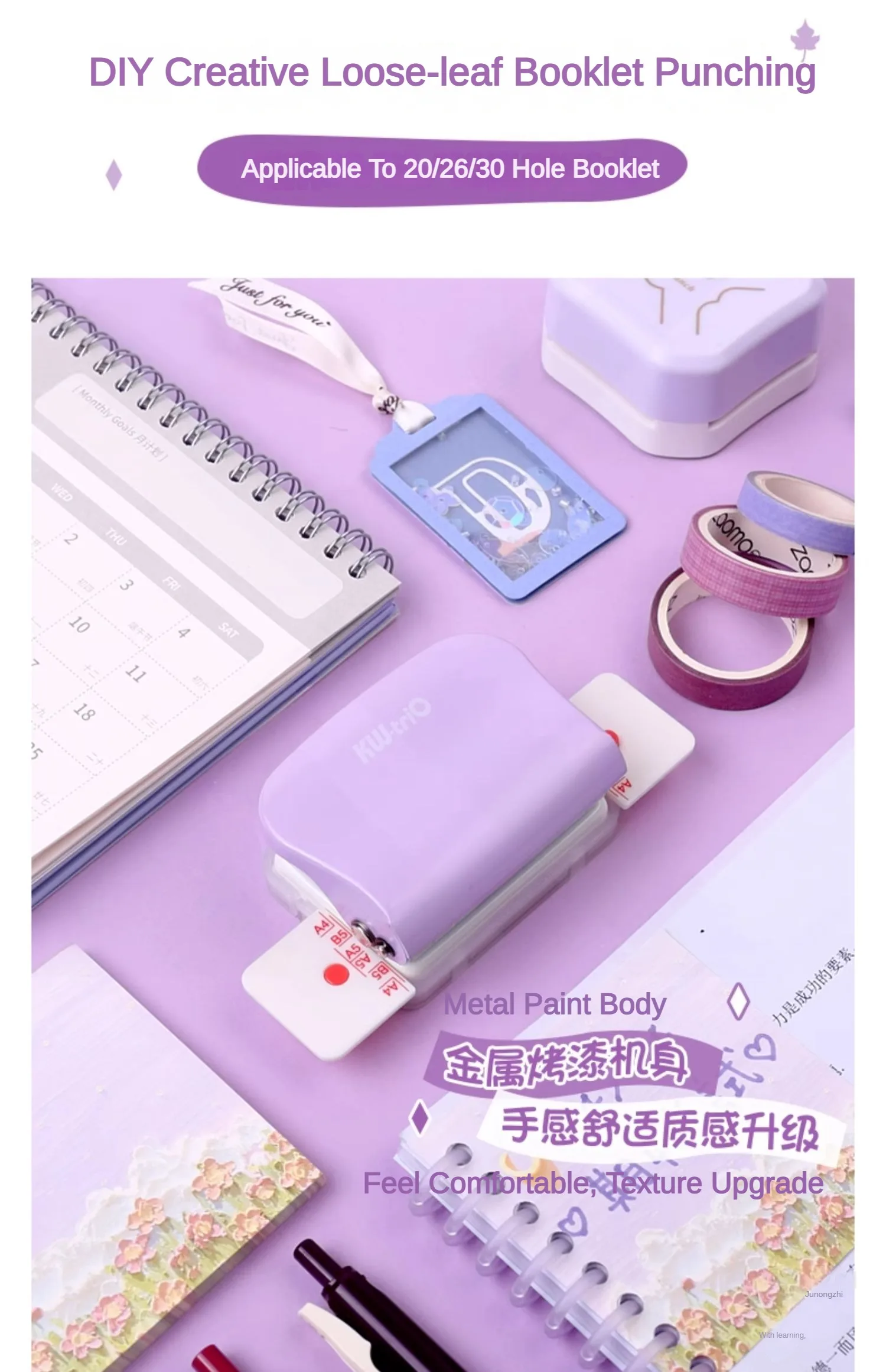 Poinçon à papier portatif à 6 trous, 10 feuilles de métal, Support Multiple 20/26/30 trous, papeterie fournitures de bureau, KW-TRIO