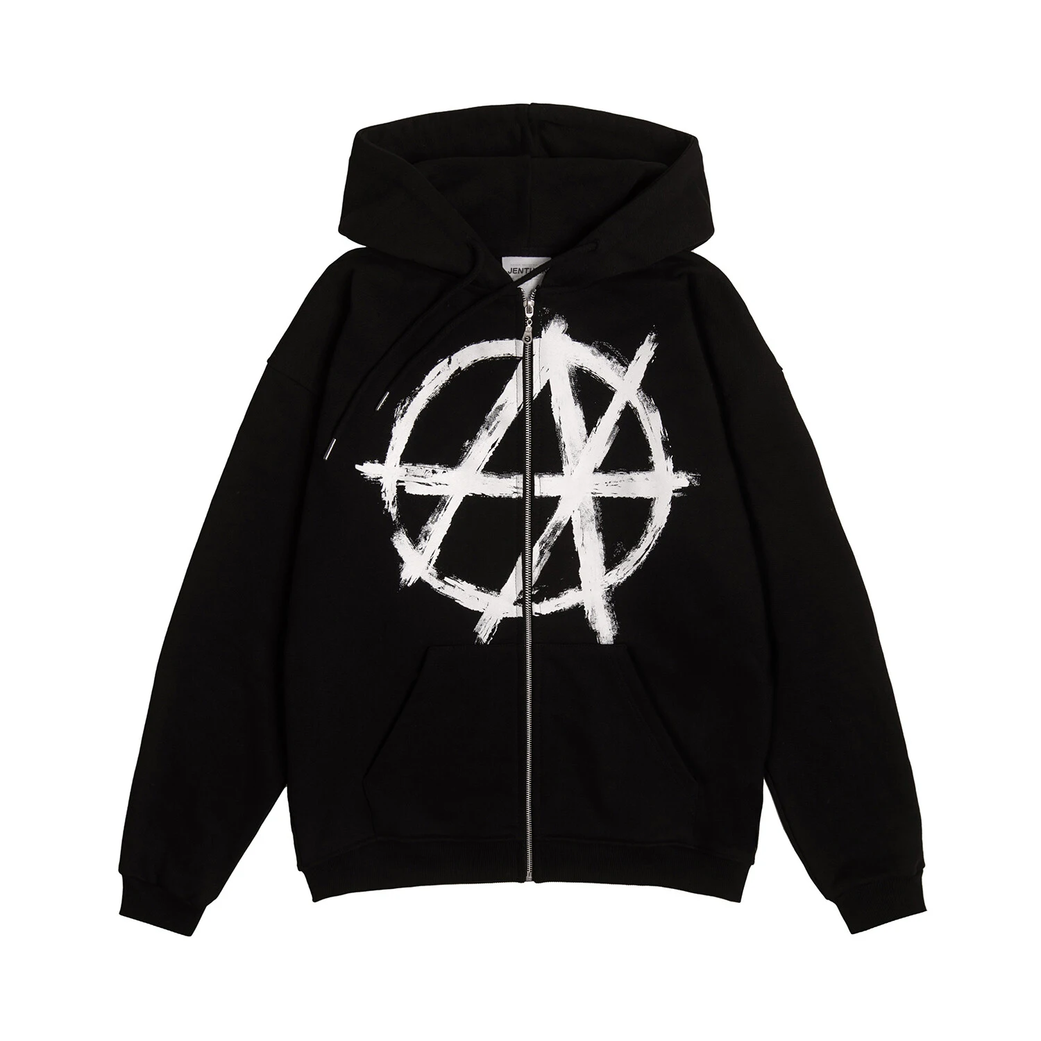 Pull à Capuche avec Imprimé Graphique Antihype pour Homme, Vêtement Streetwear, avec Fermeture Éclair, PVD, Hip Hop, Esthétique, Goth, Y2k, Harajuku