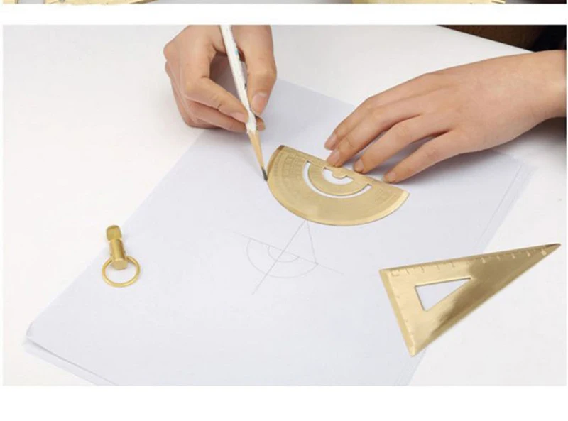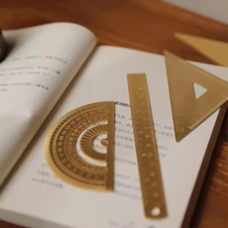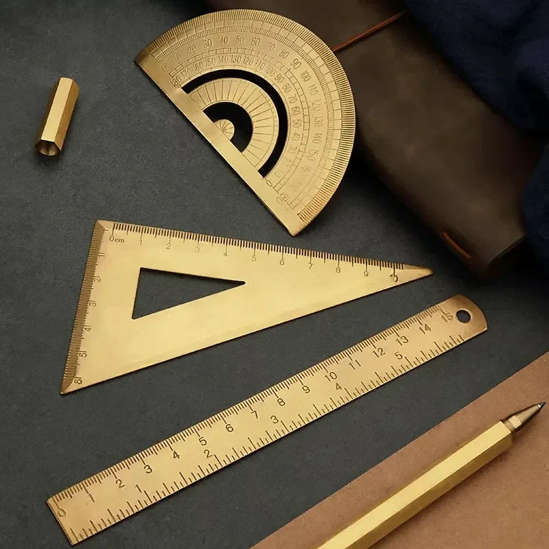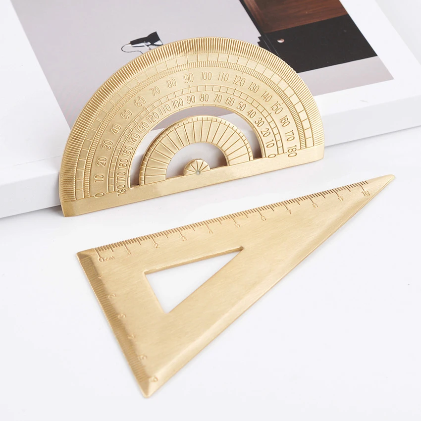 Règle droite en métal et laiton, rapporteur triangulaire Vintage, outil de mesure,