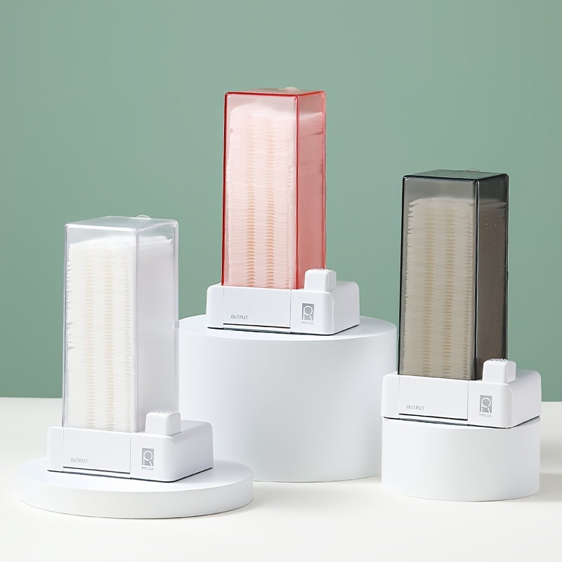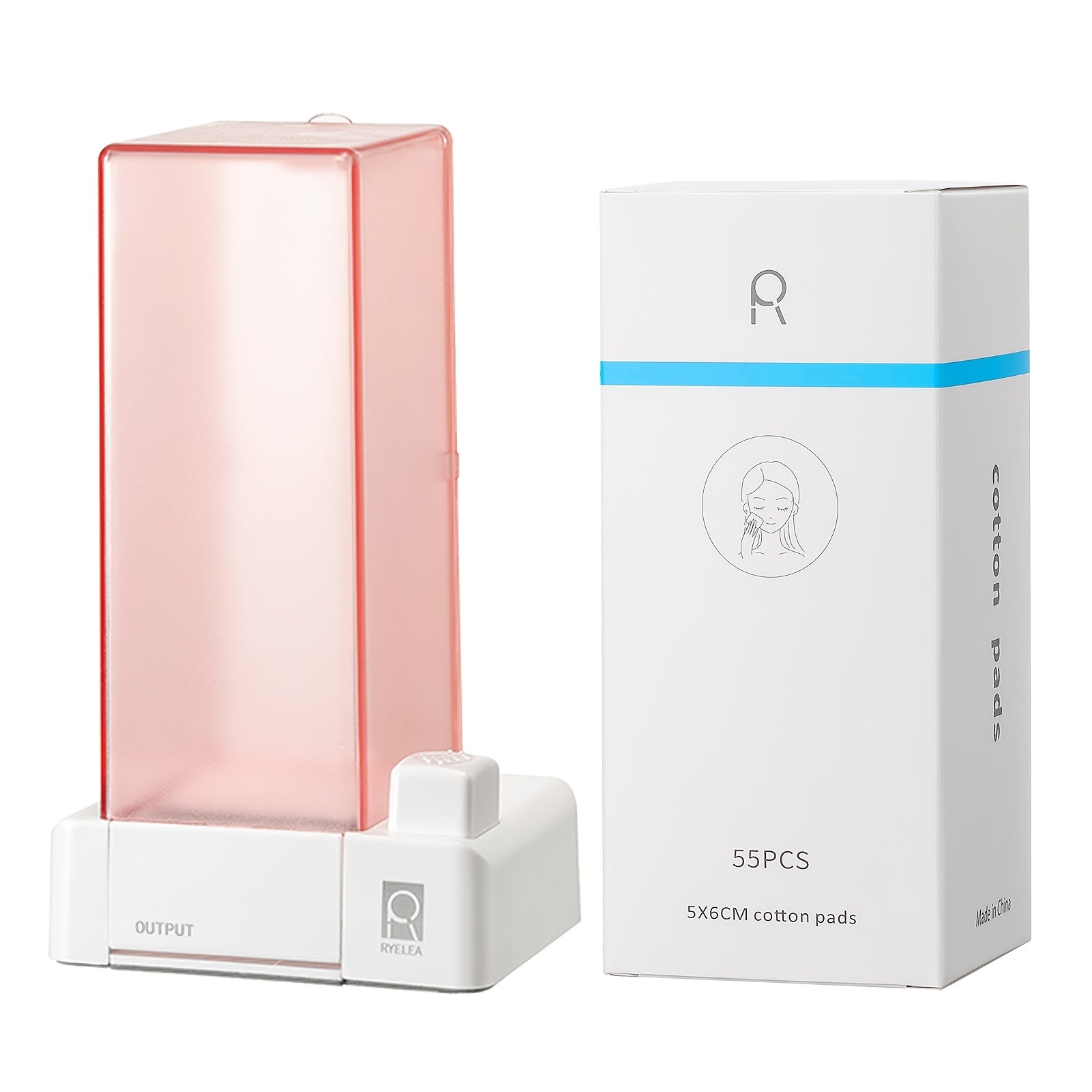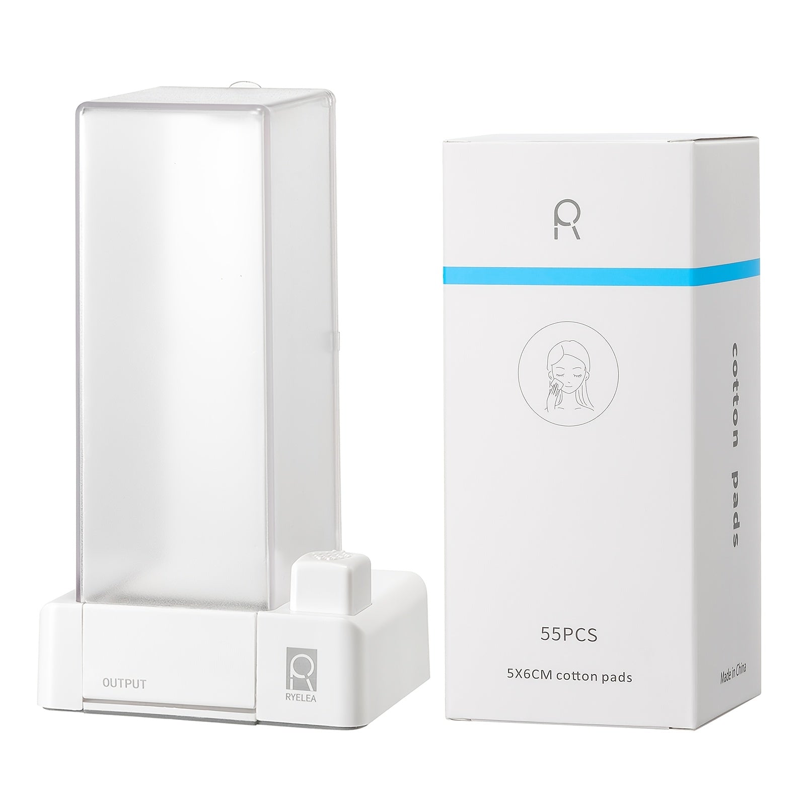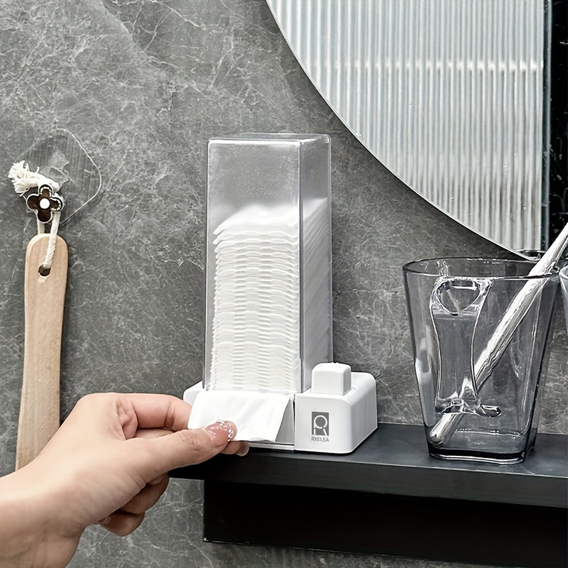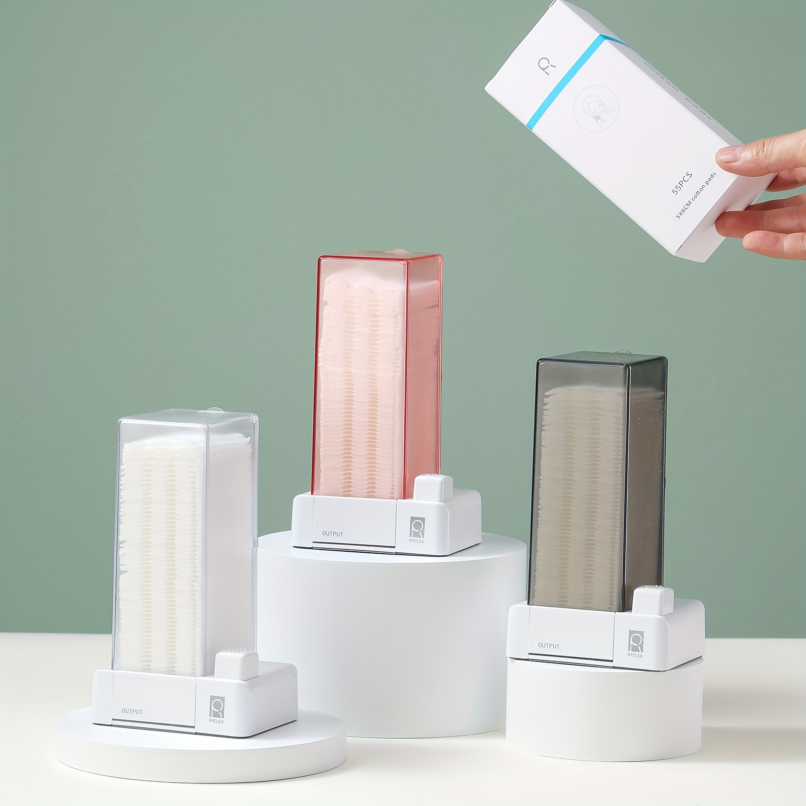 RYELEA 5X6Cm Makeup Remover Pad Organizer Press-To-Dispense Pad Storage Box Dispenser– Waterproof Bathroom Organizer for Vanity And Countertop