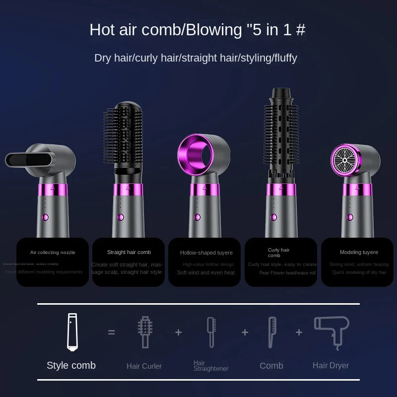 Sèche-cheveux professionnel à ions négatifs, usage domestique, peigne à air chaud, lissage et bouclage des cheveux, fer à friser, 5 en 1