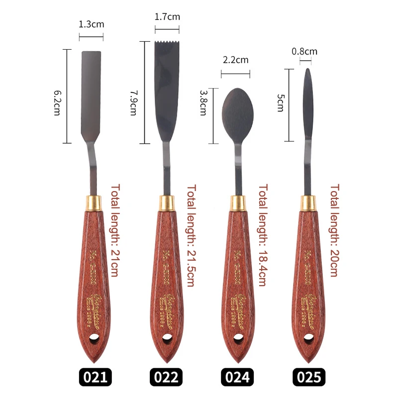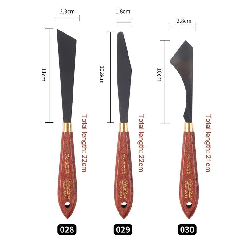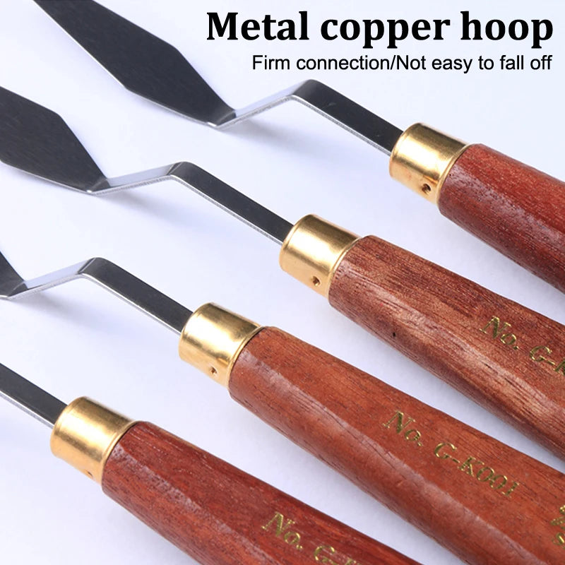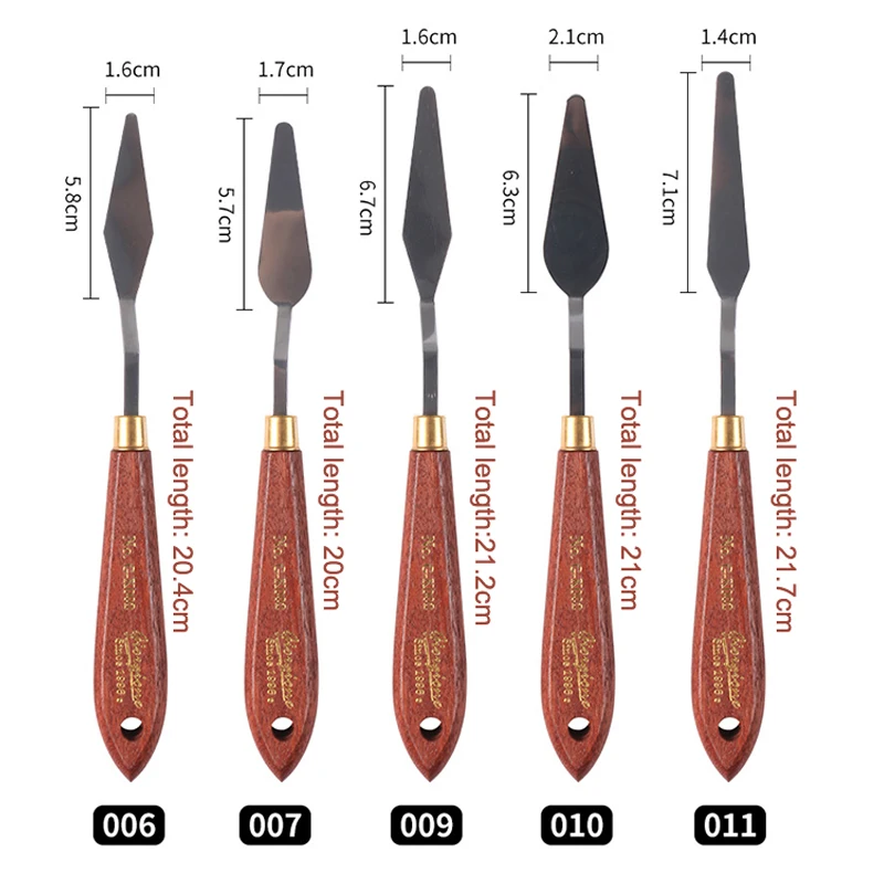 5, facile à nettoyer : fabriqué avec précision, ce couteau à palette d'art en acier inoxydable présente une surface lisse qui empêche efficacement les résidus de peinture de coller. Après utilisation, une simple lingette suffit pour nettoyer la lame rapidement, la gardant impeccable, économisant du temps et des efforts.