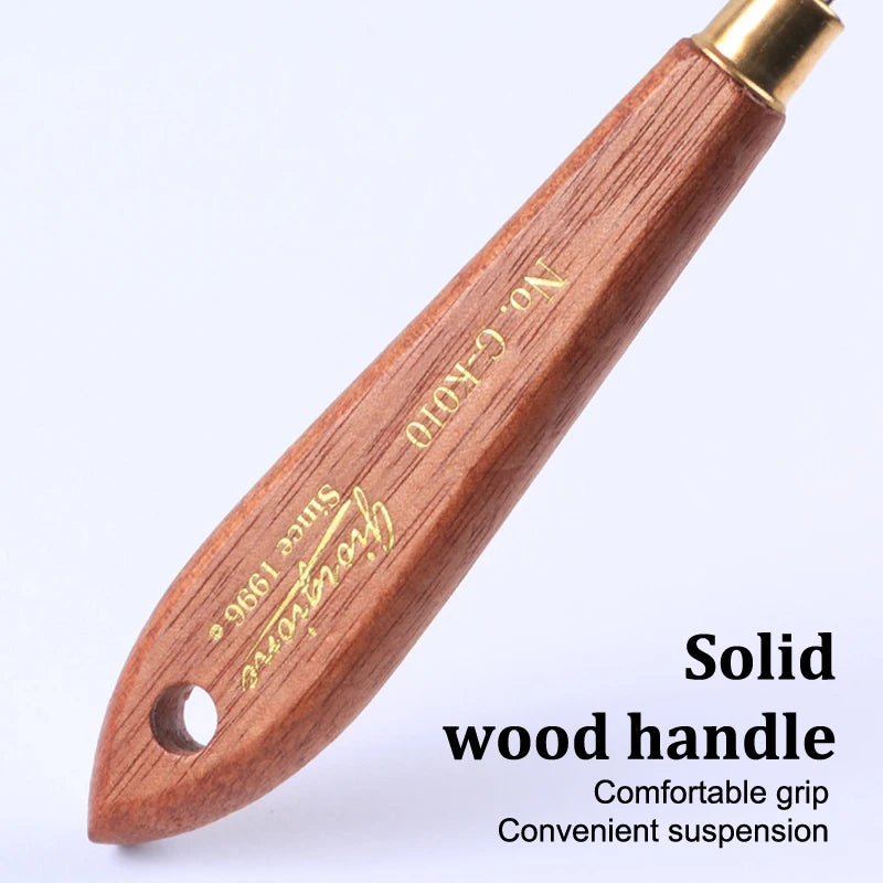 2, prise confortable : la poignée en bois de hêtre de qualité supérieure est conçue de manière ergonomique avec une prise lisse et confortable qui réduit la fatigue des mains lors d'une utilisation prolongée.Sa forme hexagonale unique offre un soutien supplémentaire, permettant aux artistes de contrôler la pression et l'angle avec précision.La structure du couteau à palette d'huile assure flexibilité et stabilité sur diverses techniques de peinture, améliorant à la fois le contrôle et la précision dans le processus créatif.