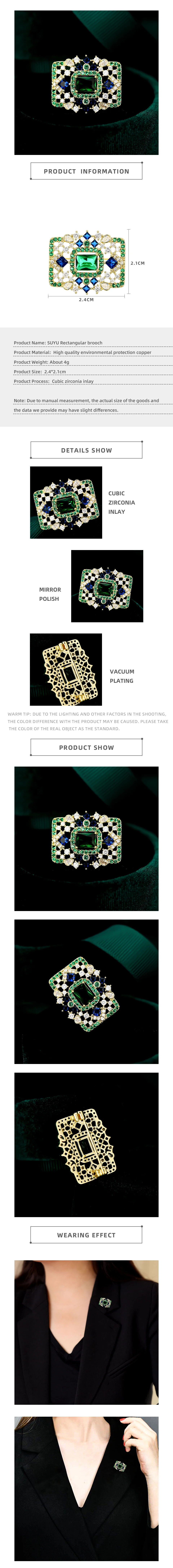 SUYU Imitation jadéite rectangulaire couleur correspondant cubique zircone broche vêtements accessoires fixation accessoires broches