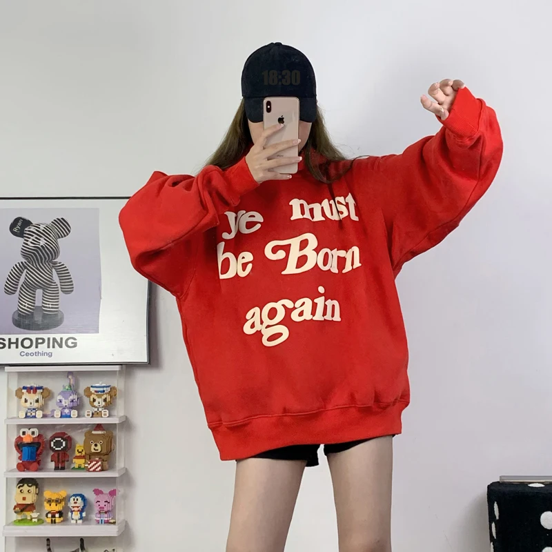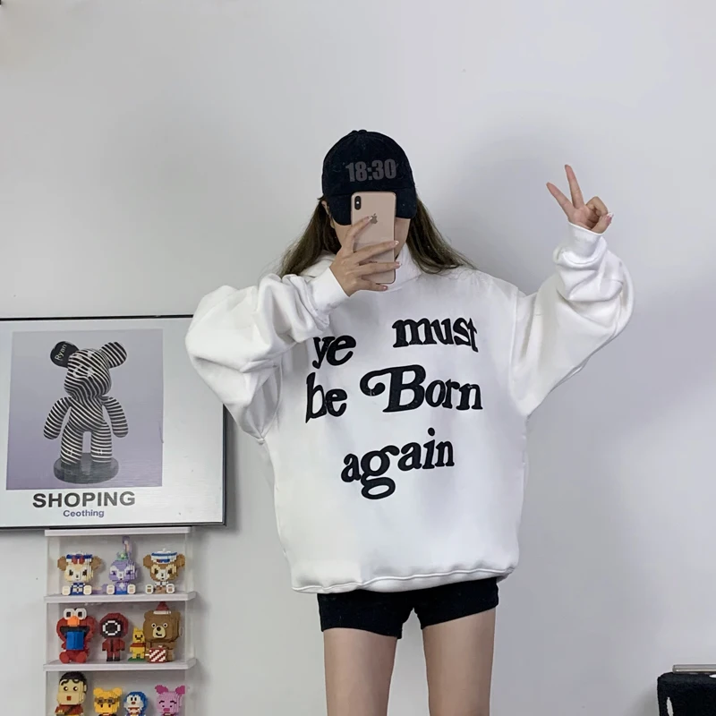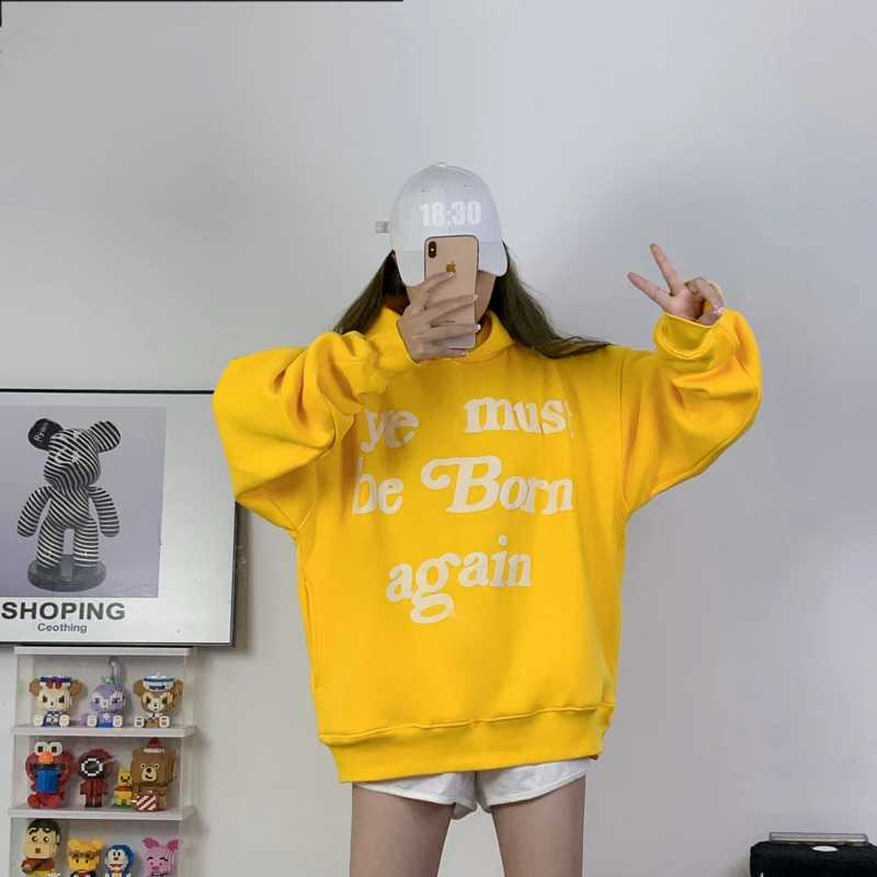 Sweat à capuche Kanye West pour hommes et femmes, pulls en mousse, impression bouffante, Ye ista Be Born Again, logo noir At Fit, CPFM, PVD, Y2K, 1:1