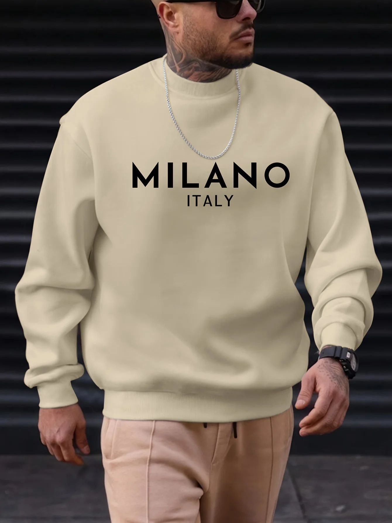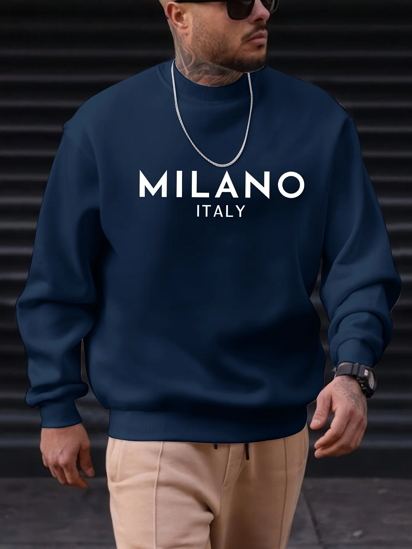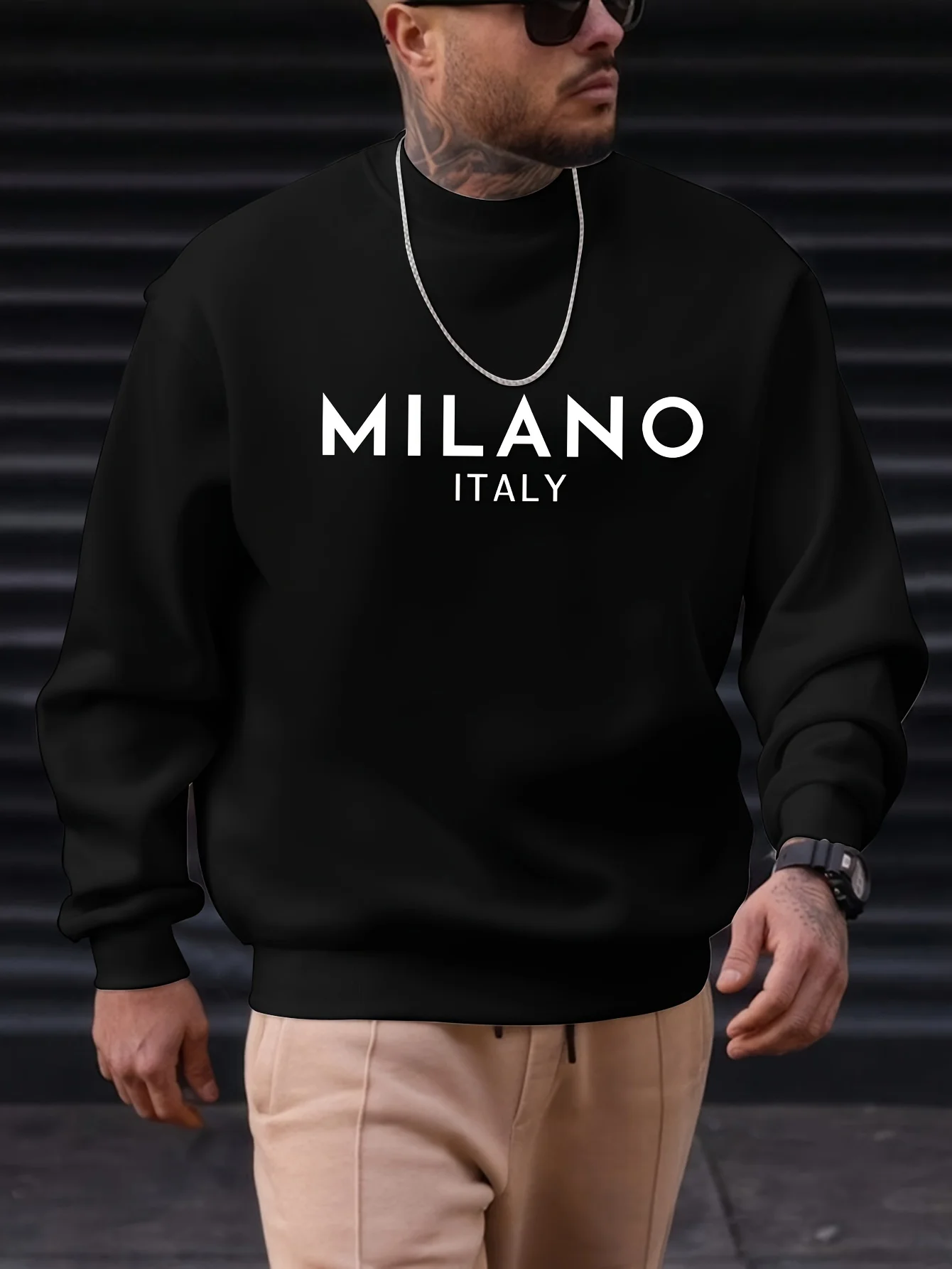 Sweat-shirt à manches longues et col rond pour homme, ample et décontracté, imprimé MILANO ITALIA, à la mode, automne et hiver