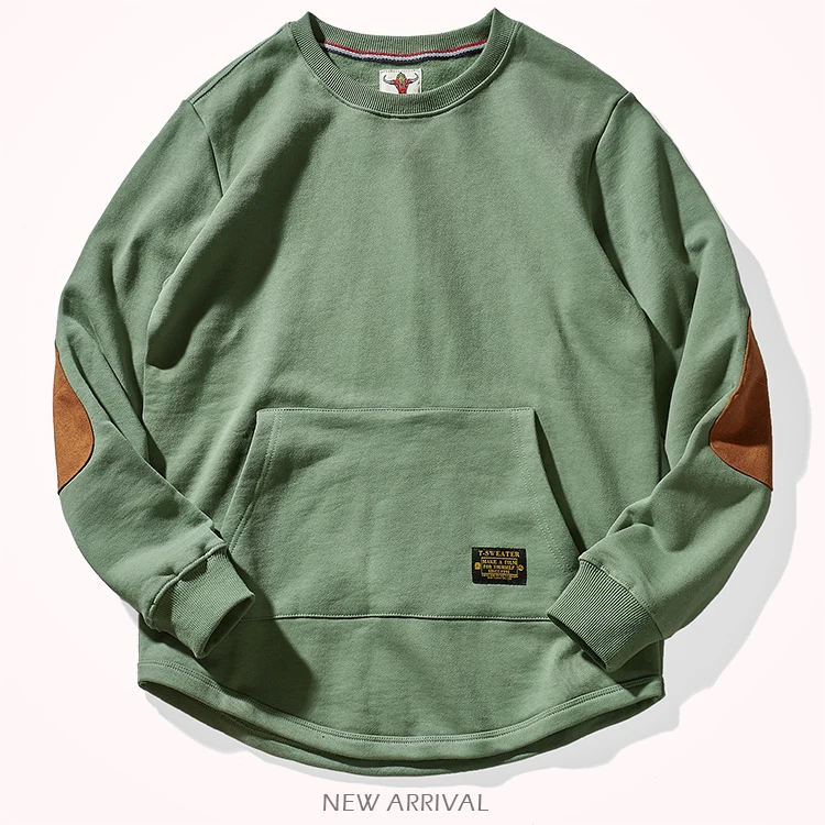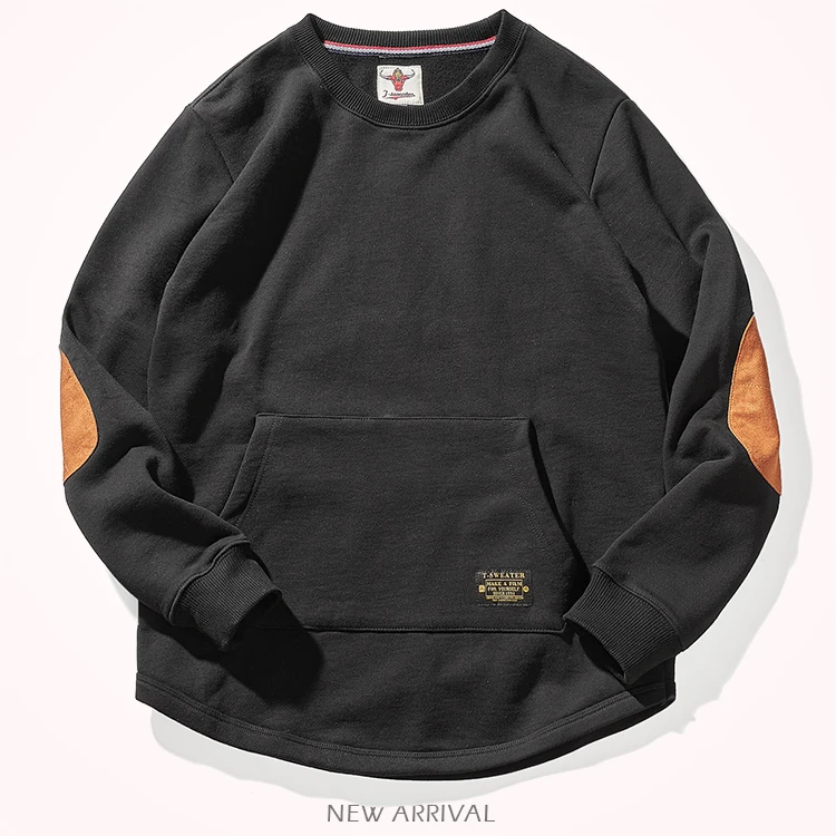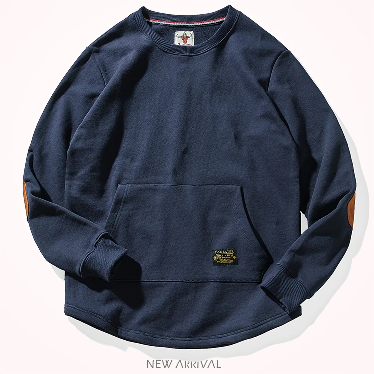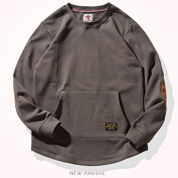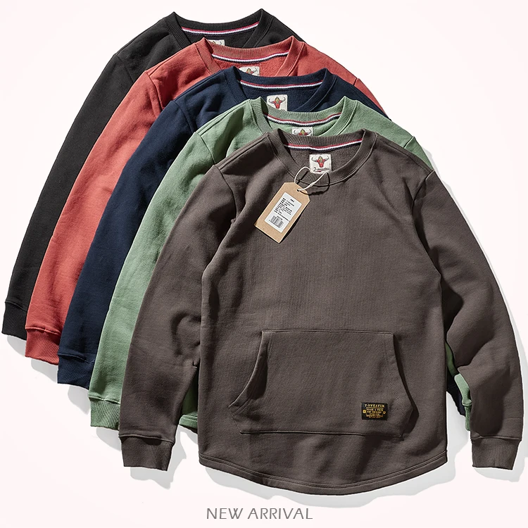 Sweat-shirt kangourou en velours pour homme, nouveau, rétro américain, lourd, poches, Simple, pur coton lavé, vêtement de sport décontracté, automne et hiver