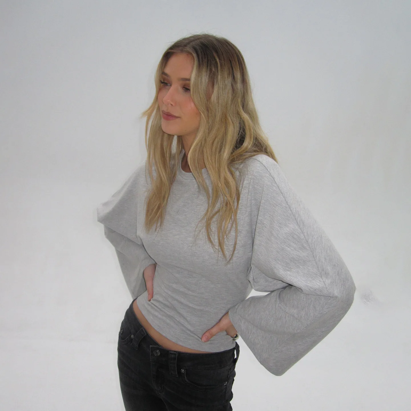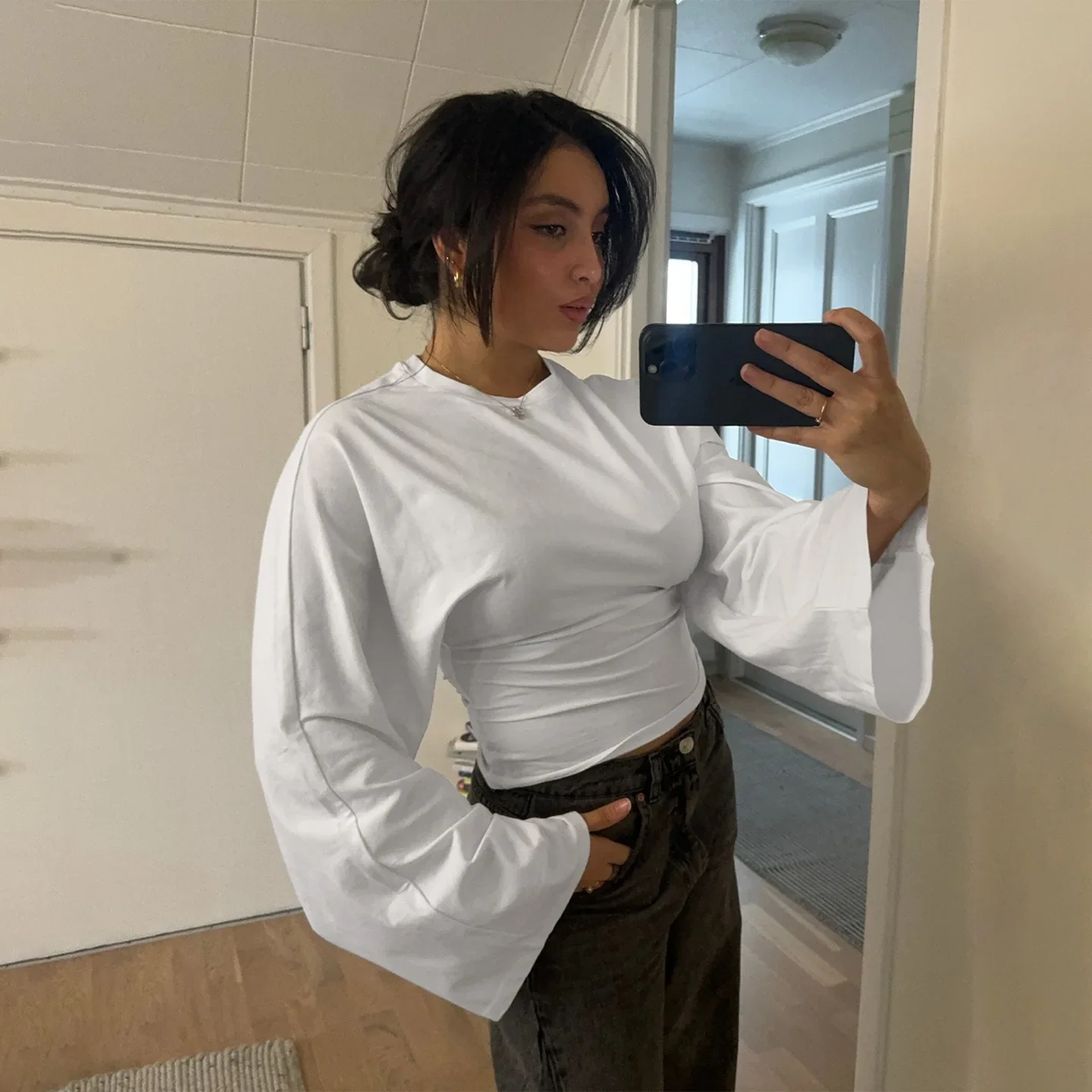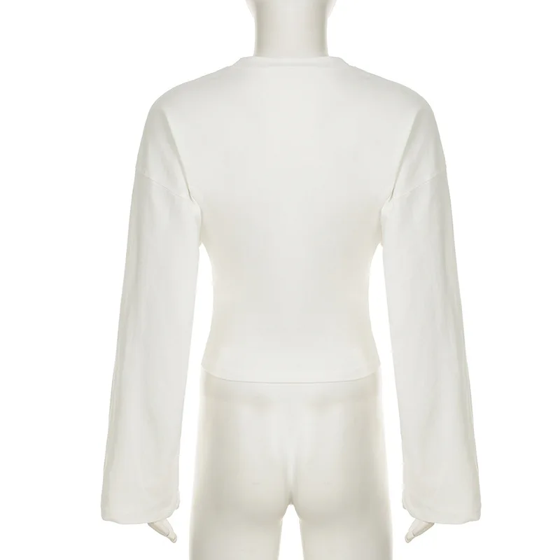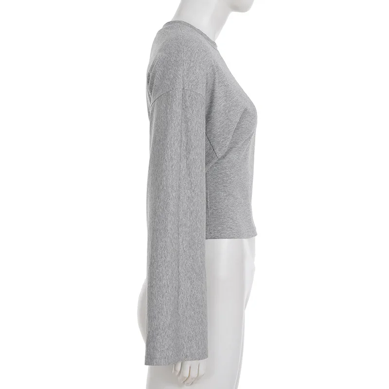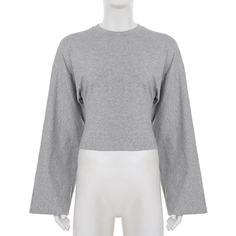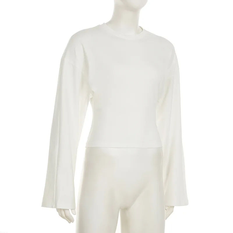 Talenza décontracté solide t-shirt femmes col rond à manches longues pull plis haut court femme 2025 automne mode basique t-shirt ample