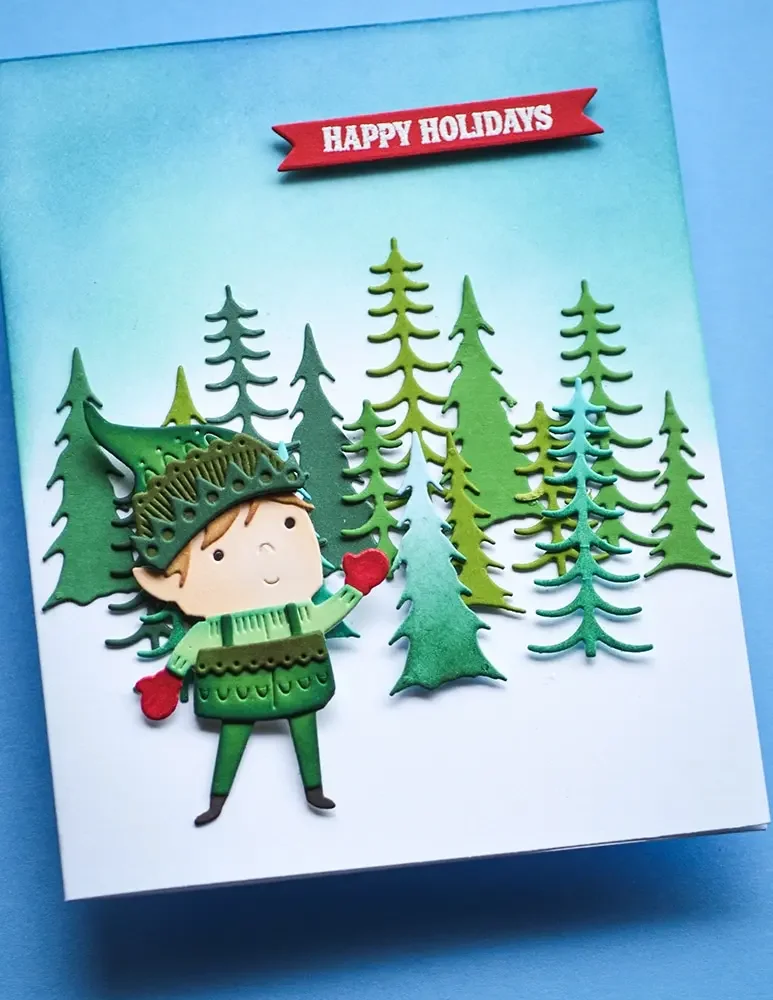 Timbres en silicone pour scrapbooking, cartes d'album photo, feuilles de Noël, arc, plantes, cerf, souche, forêt, arbres, elfe, matrices de découpe en métal