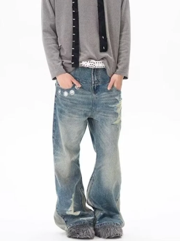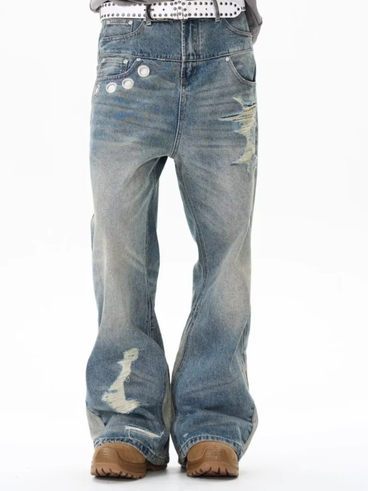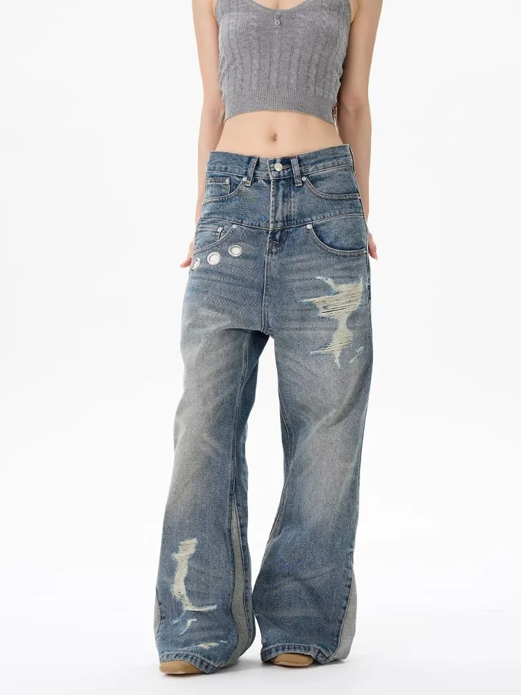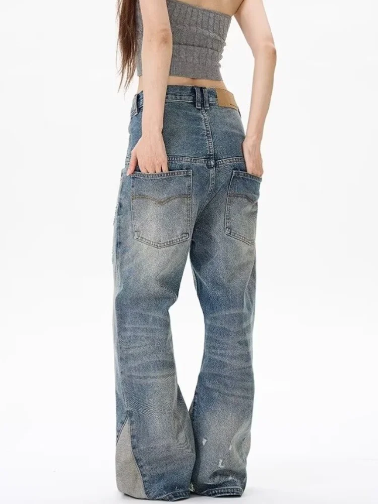Trashy Y2K 2000S Vintage bleu Patchwork Baggy empilé déchiré jean pantalon pour femmes Designers vêtements décontracté dame Denim pantalon