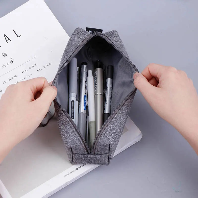 Trousse à crayons en toile bleue à rayures de couleur unie,