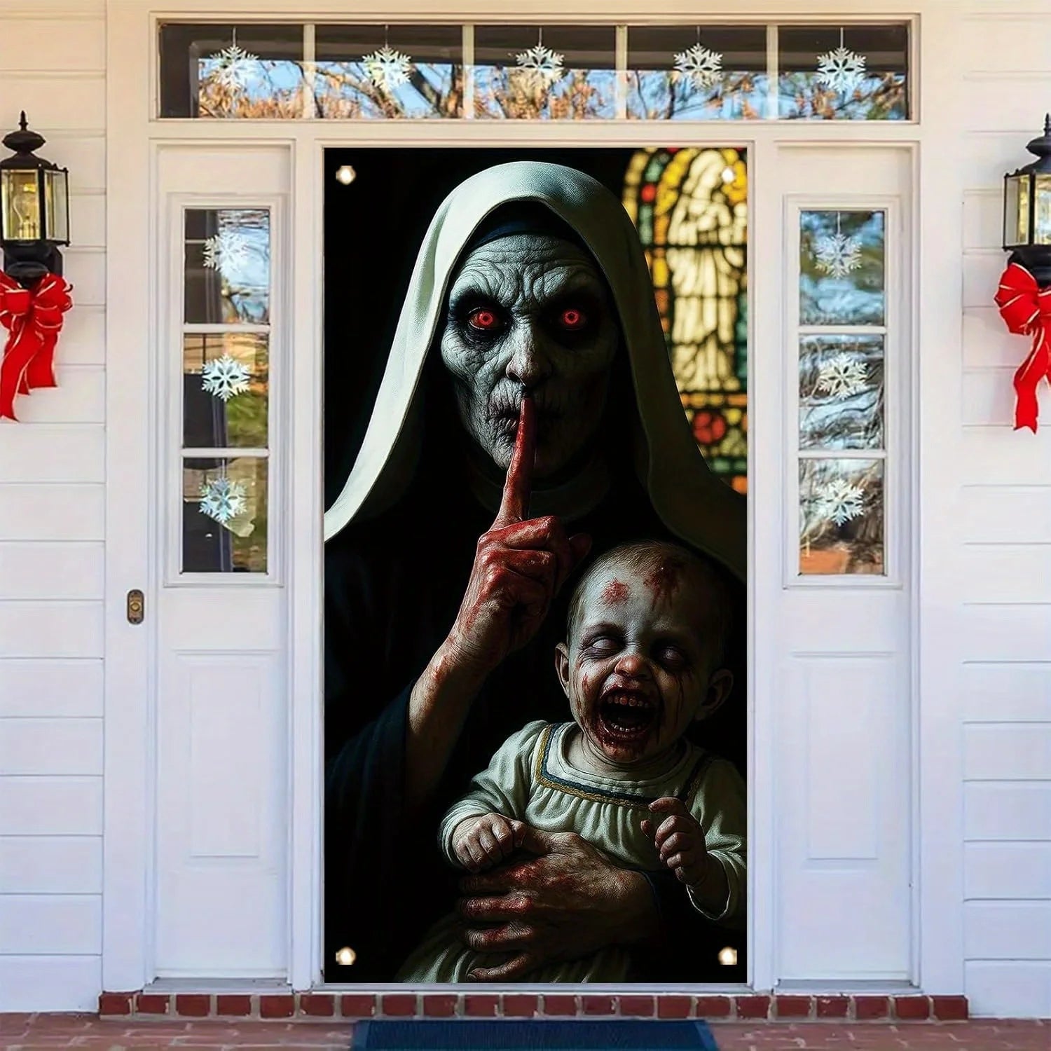 Une décoration de porte d'Halloween, un bannière terrifiuse zombie, monstres eerie, un rideau de porte d'entrée, des décorations terrificantes