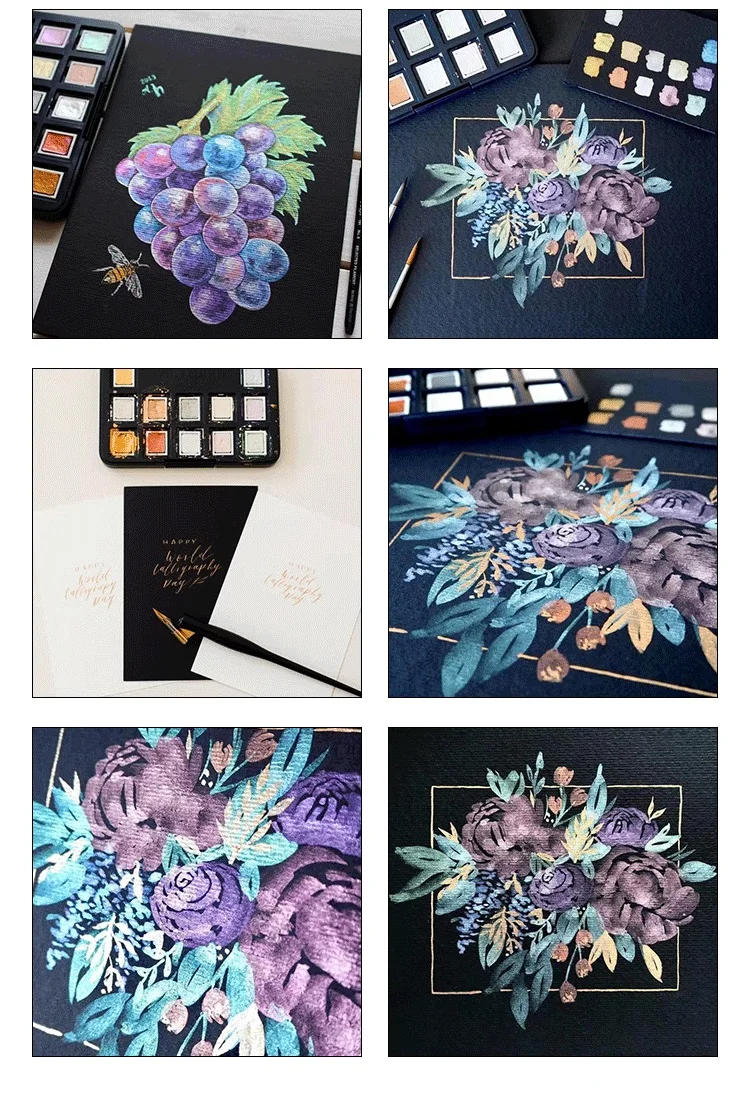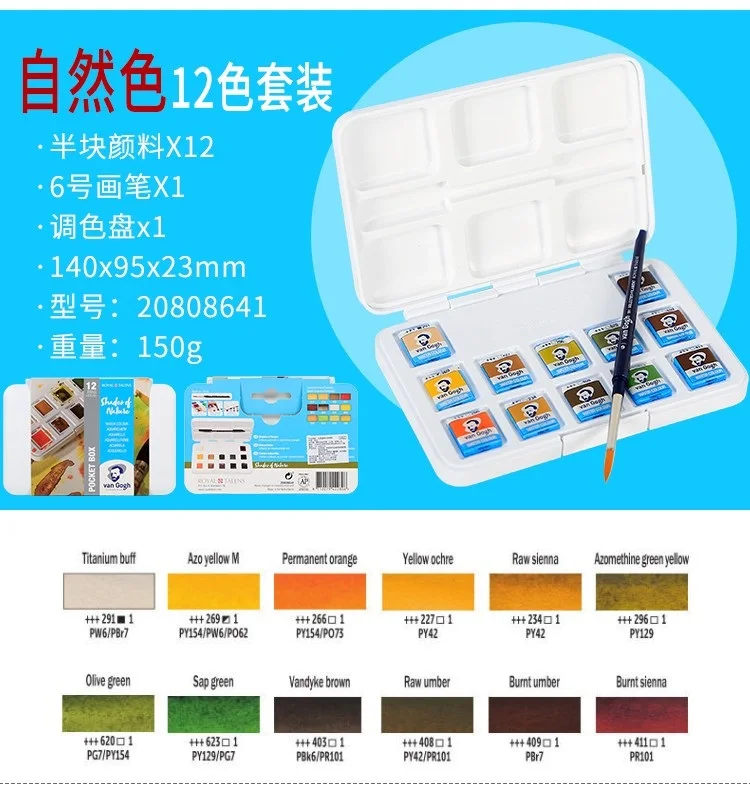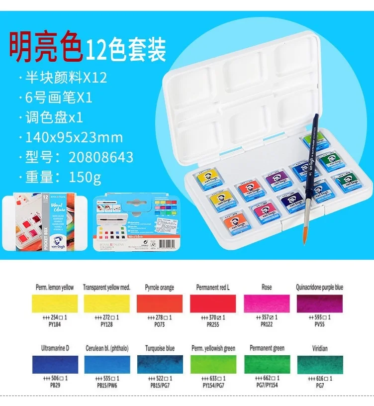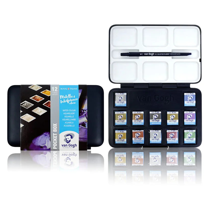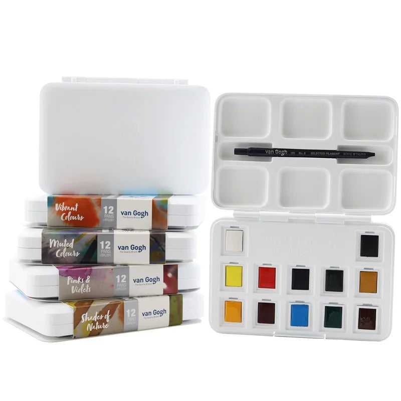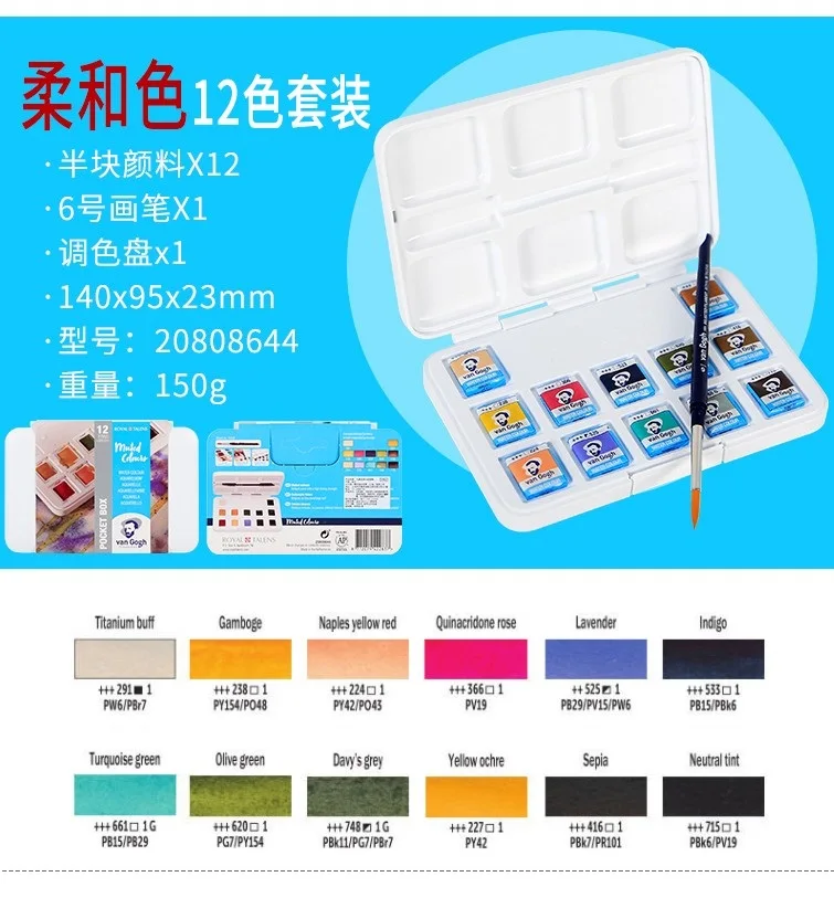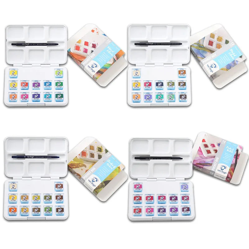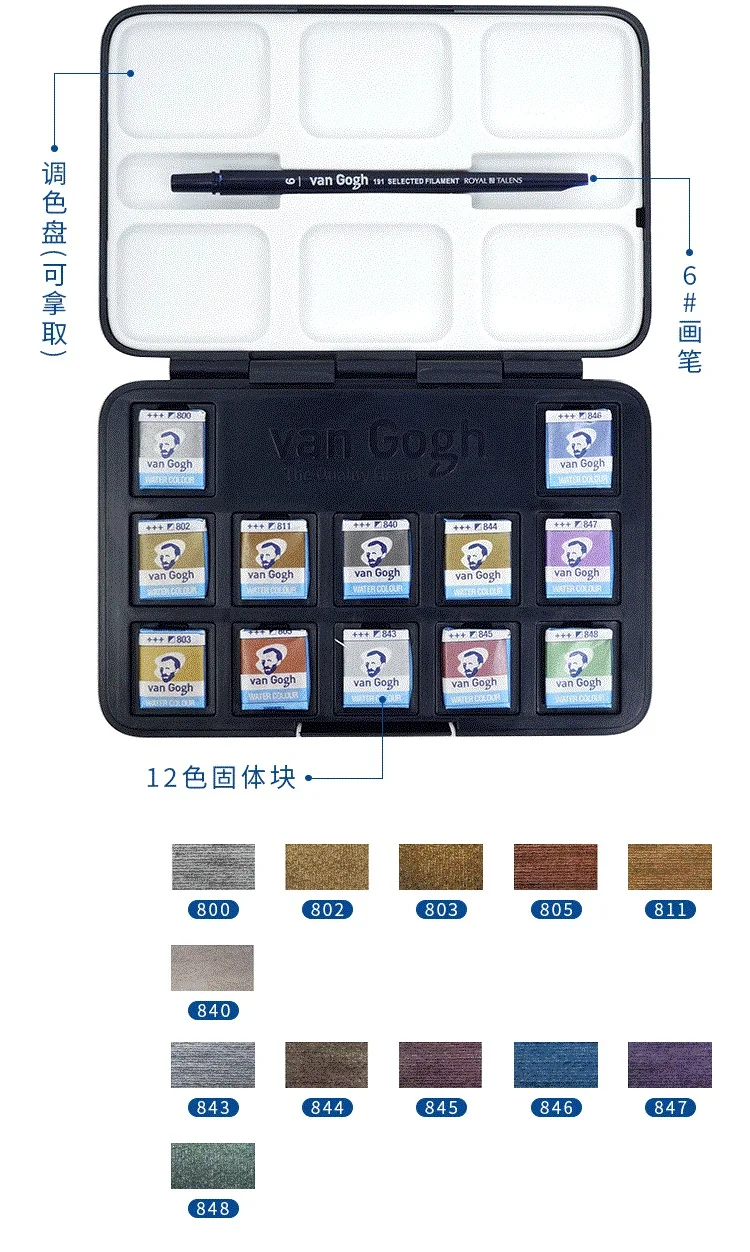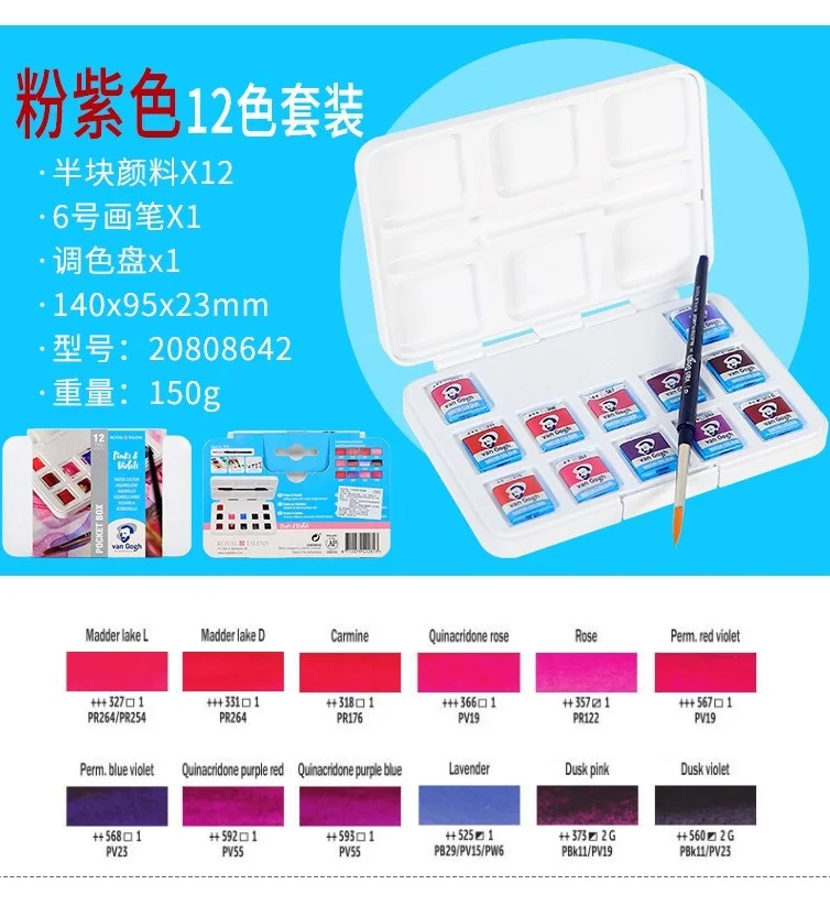Van Gogh – ensemble de peintures à l'aquarelle, série de couleurs métalliques roses et violettes, fournitures d'art, fournitures scolaires
