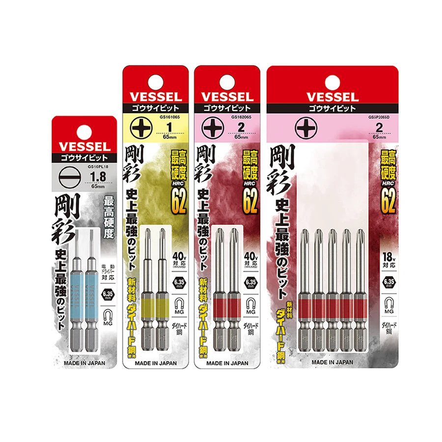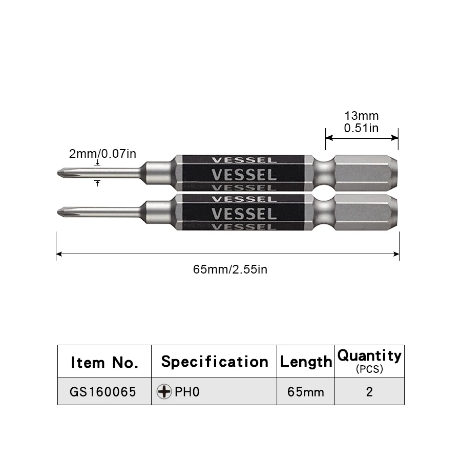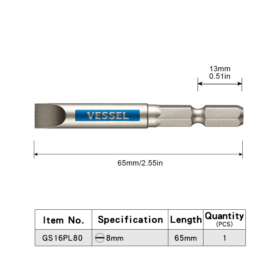 VESSEL-Jeu d'embouts de tournevis pour Phillips et vis à fente, embout magnétique à tête unique, accessoires pour outils à main, série NO.GS16