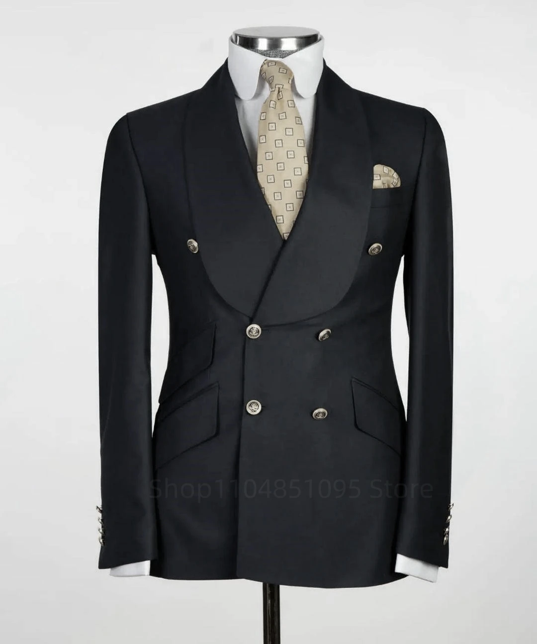 Veste de costume formelle pour hommes, coupe cintrée, bleu marine, manches longues, châle, revers, Double boutonnage, Blazer d'affaires, un manteau, veste de travail et de bureau