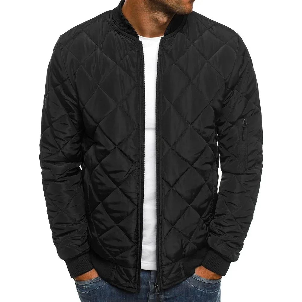 Veste d'hiver en coton à carreaux pour hommes, Parka chaude et épaisse à col montant, manteau sans col pour scène décontractée