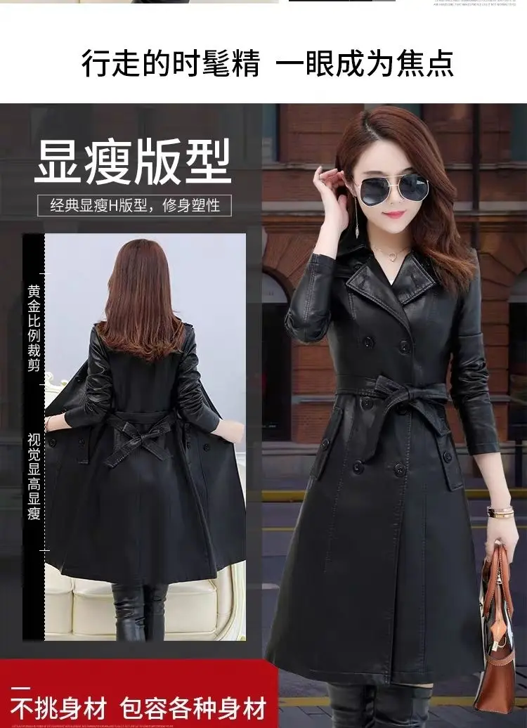 Veste en cuir d'agneau composé pour femme, manteau en fausse fourrure, trench long, lavage gratuit, vêtements en PU, Streetwear, Top, 138