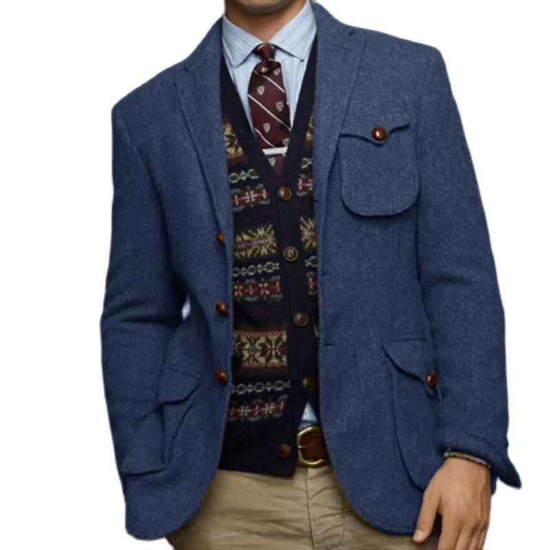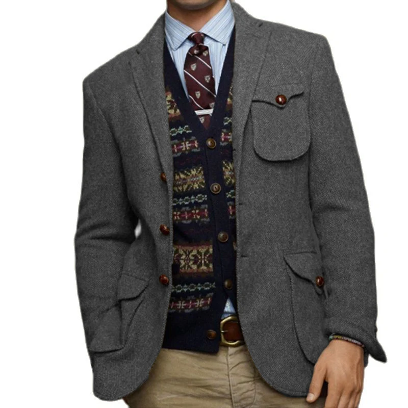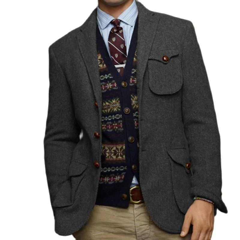 Veste en tweed trempée pour hommes, simple boutonnage, revers pointu, veste multi-poches, mince, élégante, mode, chimsteampunk, mariage, Rh