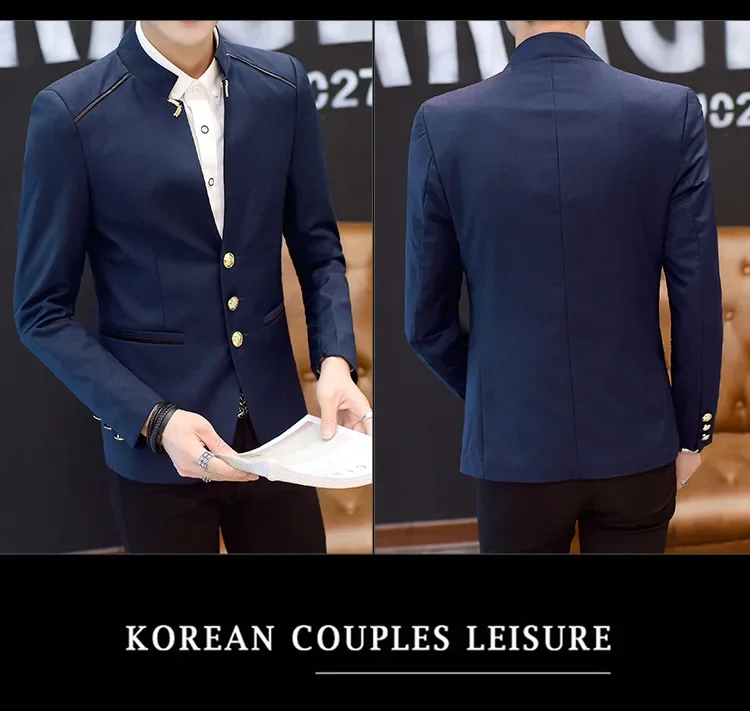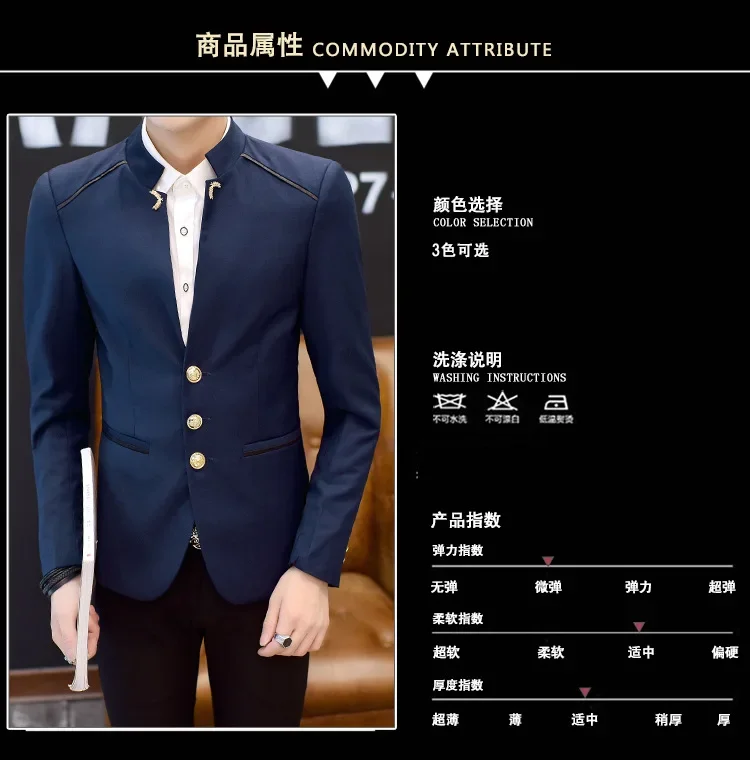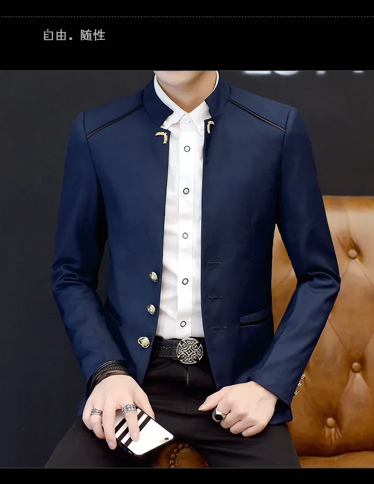 Vestes de costume décontractées à col montant pour hommes, manteaux de Blazer à trois boutons avec coutures de couleur unie, mode jeunesse, nouvelle collection printemps 2024