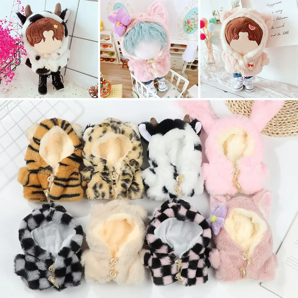 Vêtements de poupée idole de 20cm, jolies poupées en peluche en coton, pardessus en peluche Animal, lapin ours tigre, Mini boucle en corne, vêtements de poupée