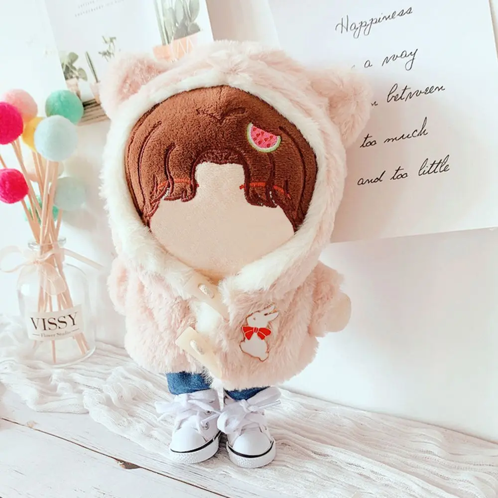 Vêtements de poupée idole de 20cm, jolis poupées en peluche en coton, manteau en peluche, lapin, ours, tigre, Mini corne, boucle, vêtements de poupée