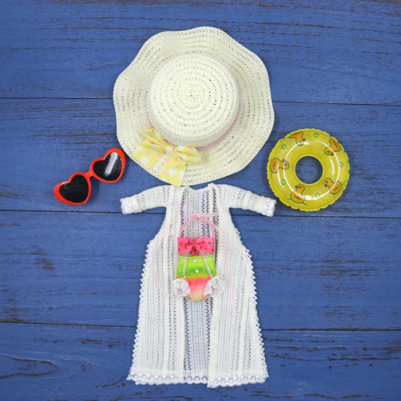 Sur la photo, le sac de la poupée et les objets dans la main sont des accessoires pour la prise de vue