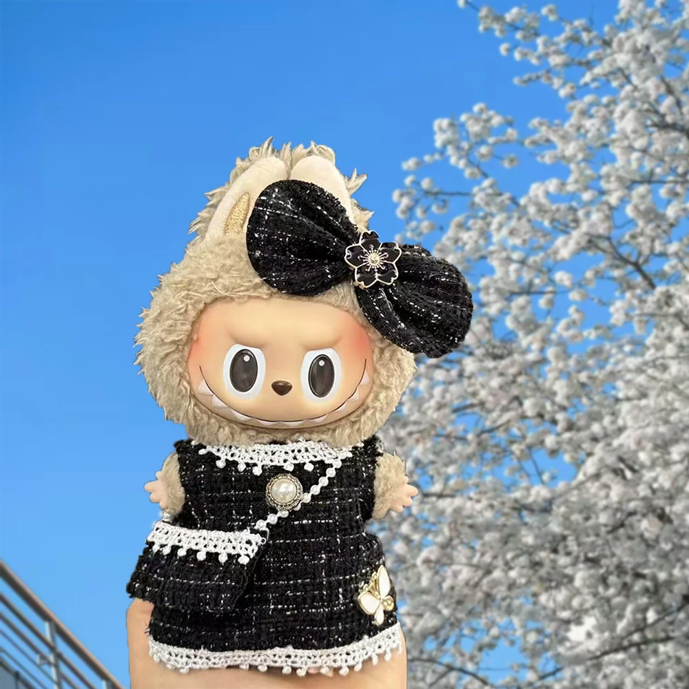 Vêtements pendentif de poupée Labubu 17cm, costume à carreaux, jupe et robe noire, ensemble de tenue élégante, accessoires mignons de décoration