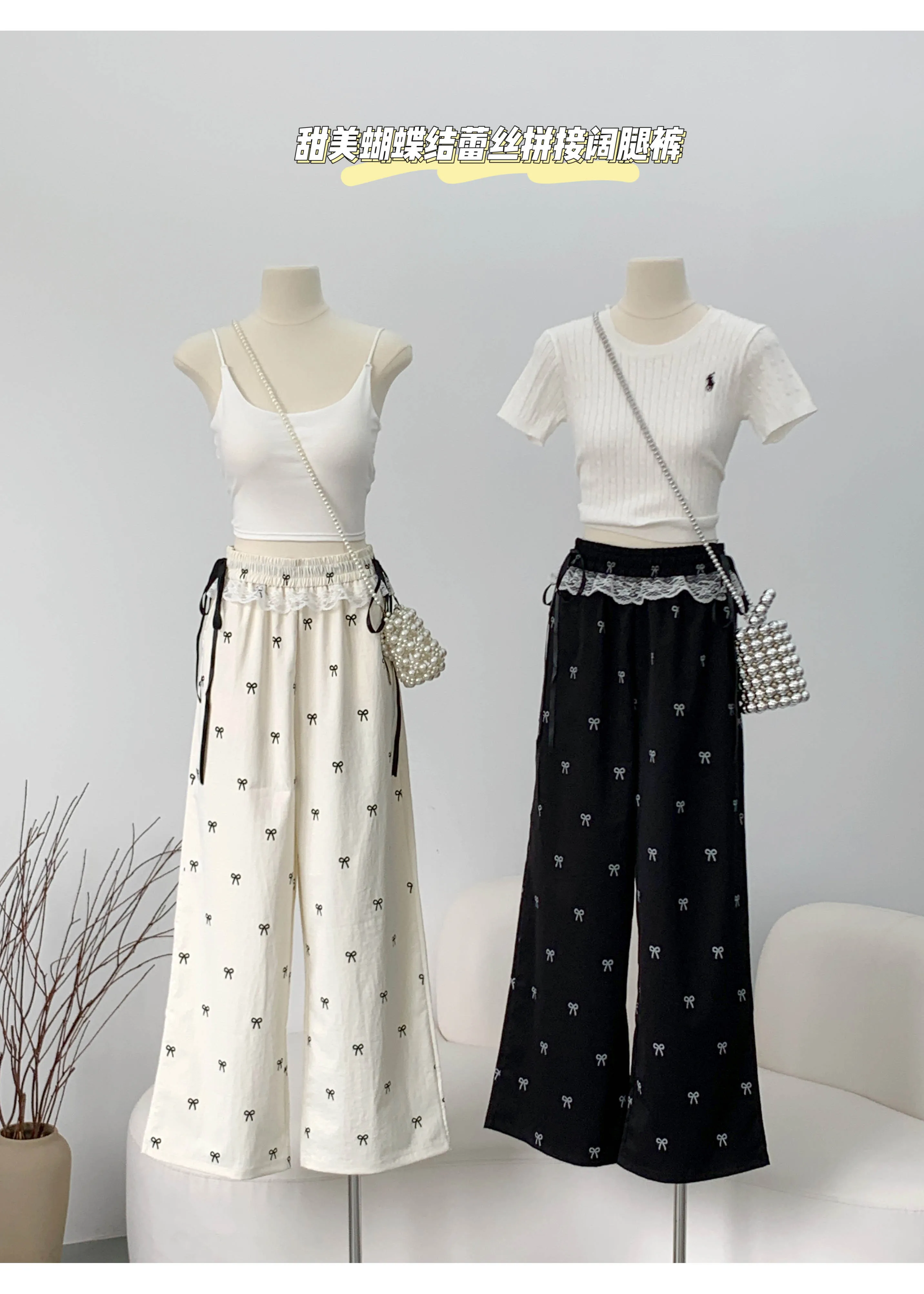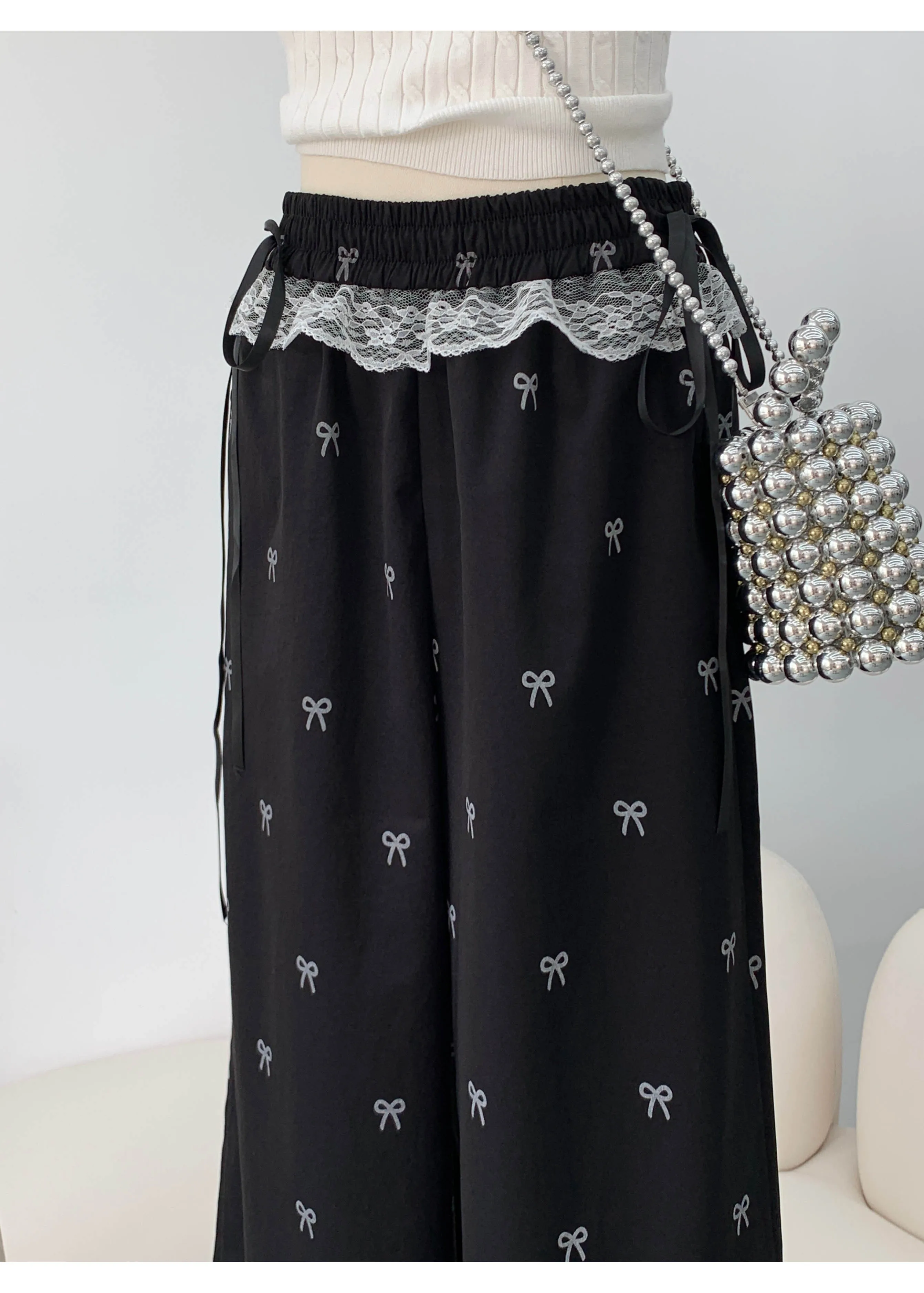 Viser décontractés pour femmes, Baggy Sweet Bow Design, Taille élastique, Esthétique Ulzzang, Jogging polyvalent, viser à jambes larges, Mode