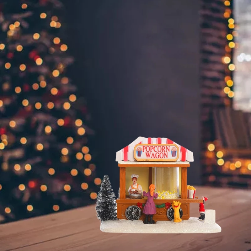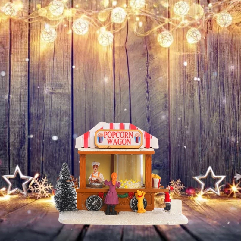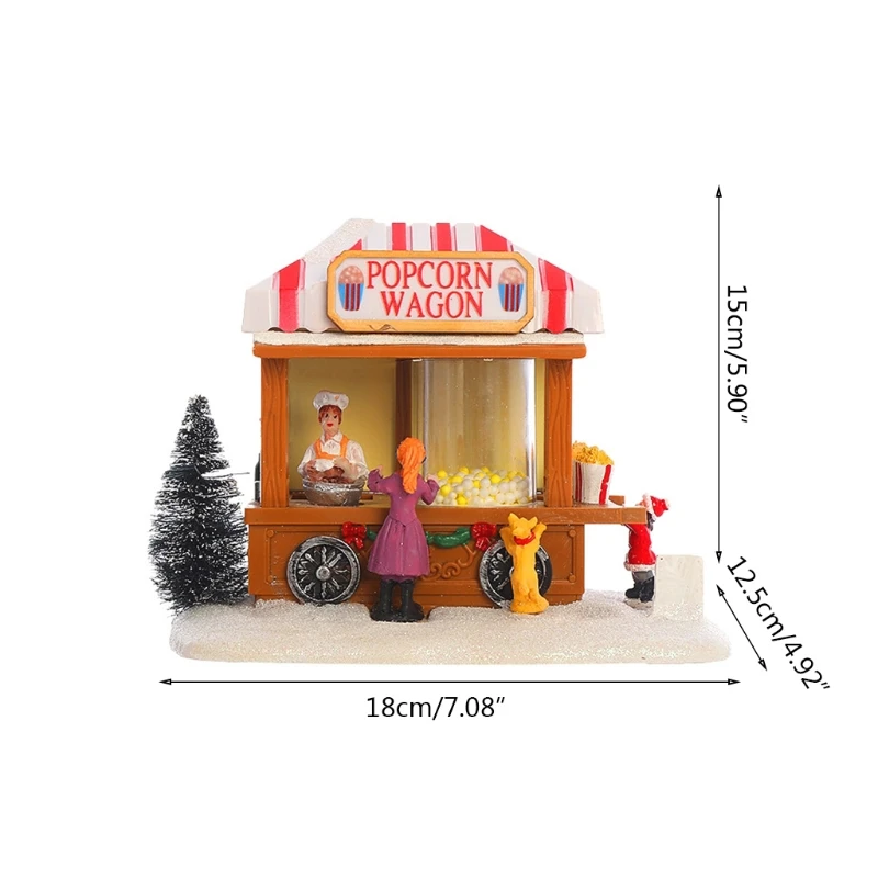 Wagon de pop-corn en résine 4.2 par LED, maison de Noël, scène de village de voiture à manger animée itude, fête de vacances de Noël, brittop, ornement
