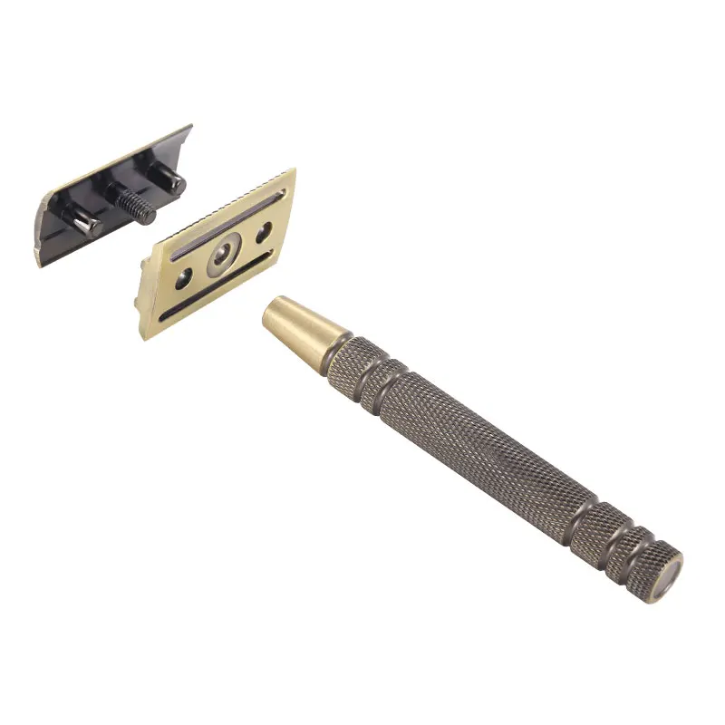 YINTAL – rasoir manuel Double face Bronze pour hommes, classique, à manche Long, sécurisé, rasage remplaçable